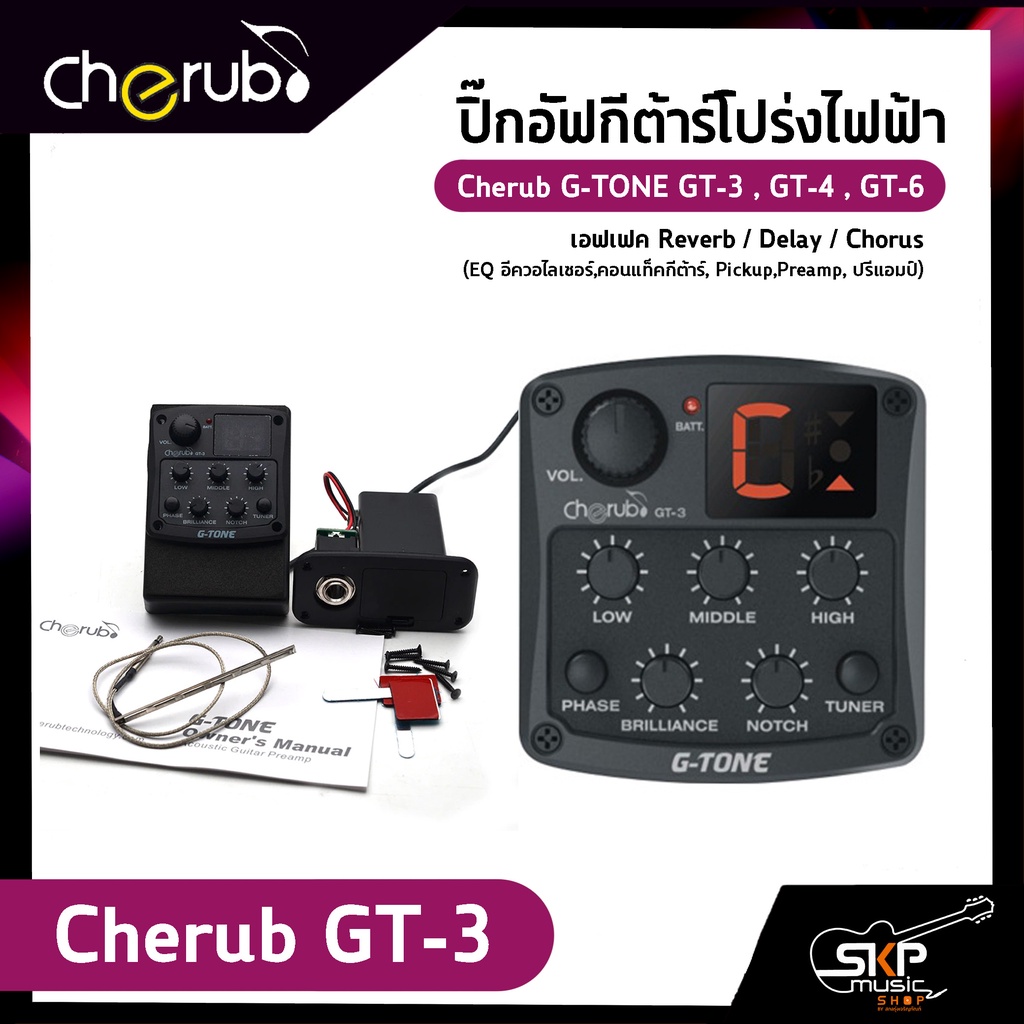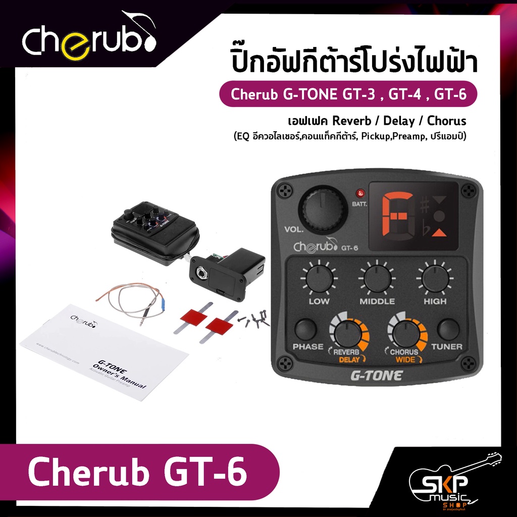 ปิ๊กอัฟกีต้าร์โปร่งไฟฟ้า Cherub G-TONE GT-3 , GT-4 , GT-6 เอฟเฟค Reverb,Delay,Chorus