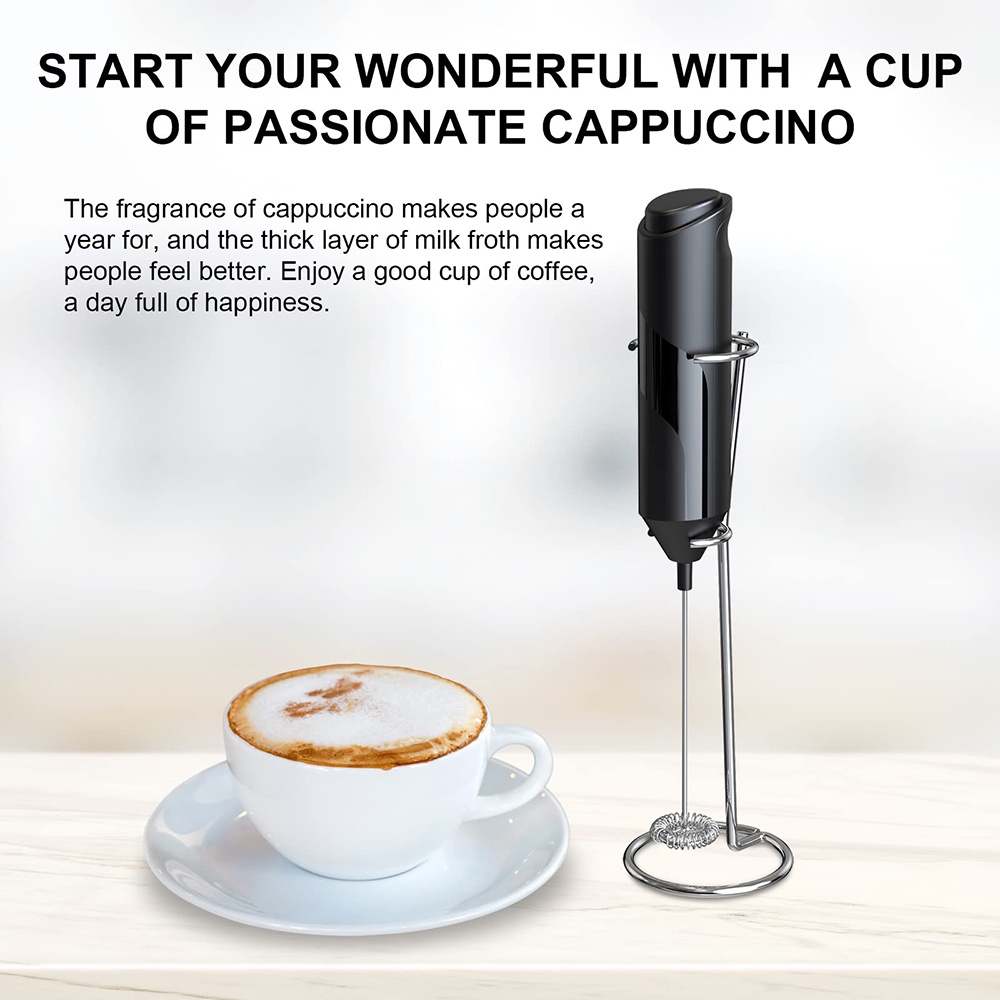 เครื่องตีฟองนมไฟฟ้ามือถือพร้อมขาตั้งสแตนเลสปัดเครื่องดื่มผสมเครื่องปั่นขนาดเล็กสําหรับกาแฟ