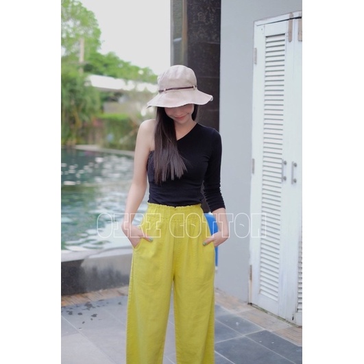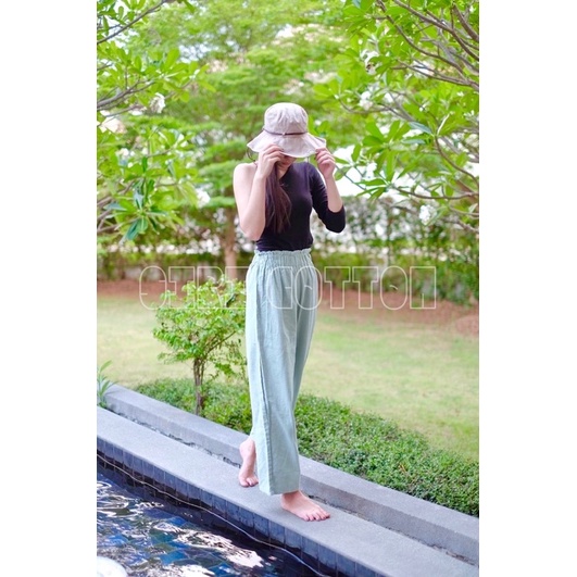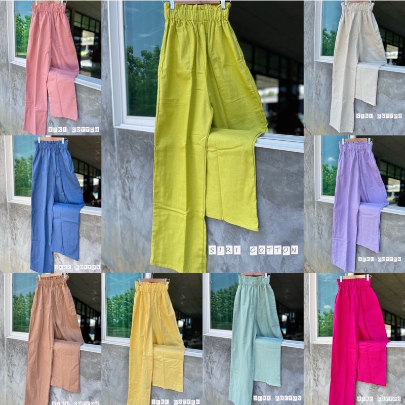 กางเกงขายาว เอวจีบรอบ(เอวสูง) ผ้าฝ้ายฟอกนุ่ม ยาว 41 นิ้ว