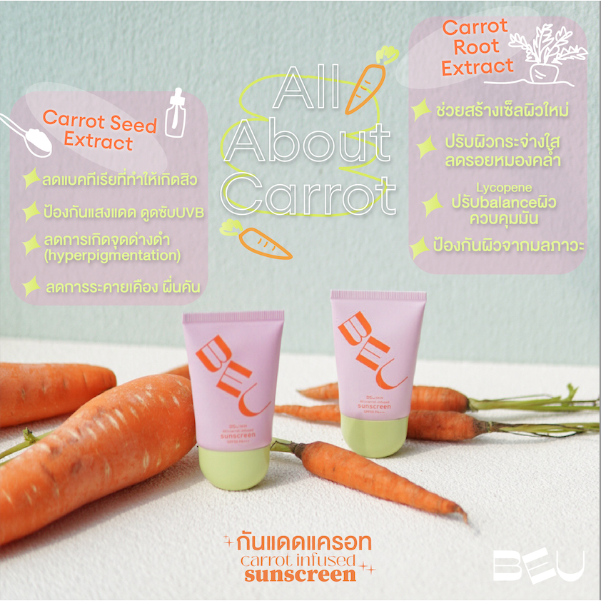กันแดดแครอท🥕✨Beu Official | Carrot Infused Sunscreeem กันแดดผสมรองพื้น ผิวSoft Matte