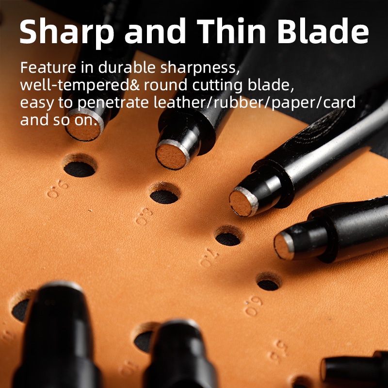 WUTA สีดํารอบ Hole Punch หนัง Hollow Punch สําหรับกระเป๋าเข็มขัดผ้าใบ DIY Leathercraft เครื่องมือ