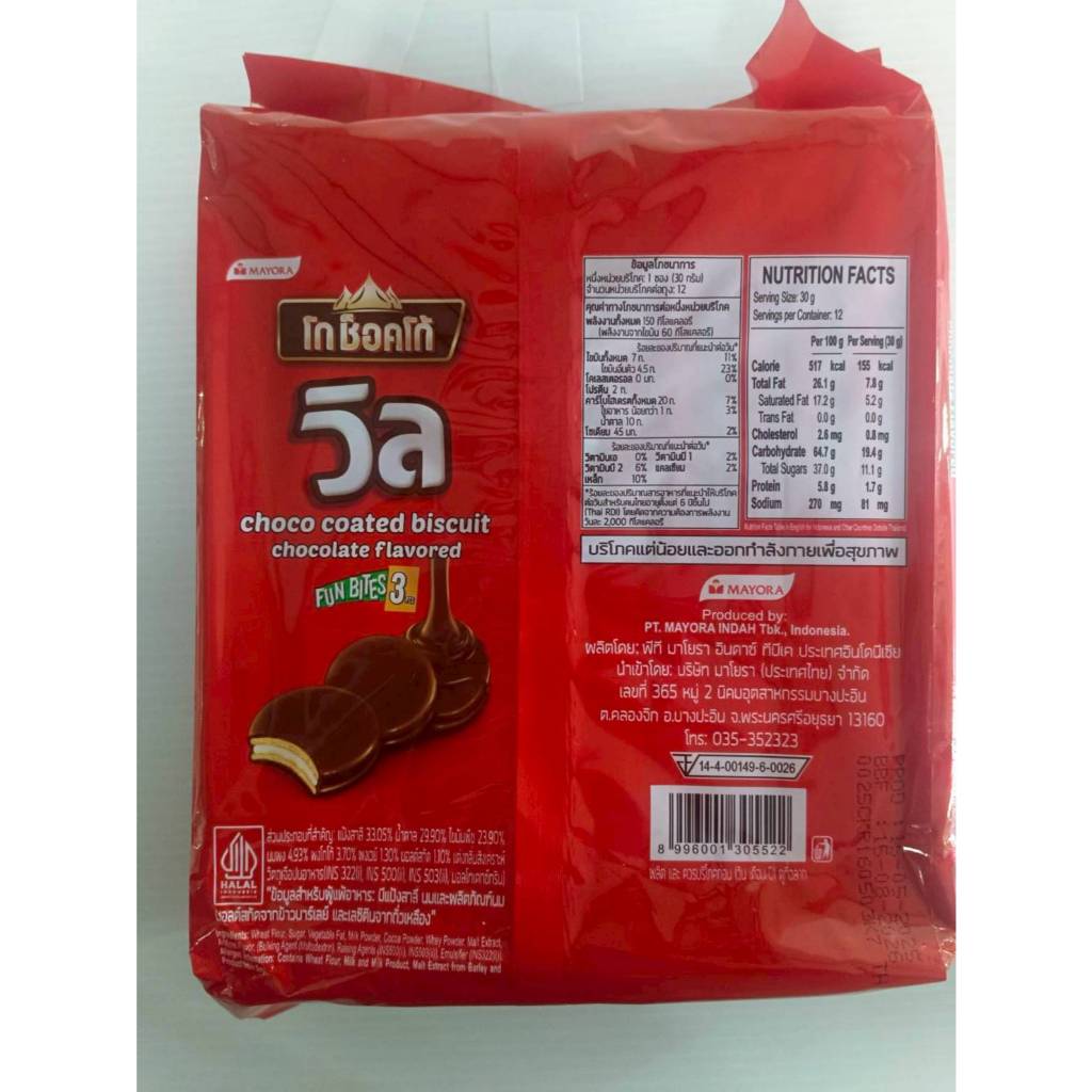 [ 3 แพ็ค ] Go Choco Weelz โก ช็อคโก้ วิล บิสกิตสอดไส้ครีมเคลือบช็อกโกแลต ขนาด 30 กรัม x 12 ซอง