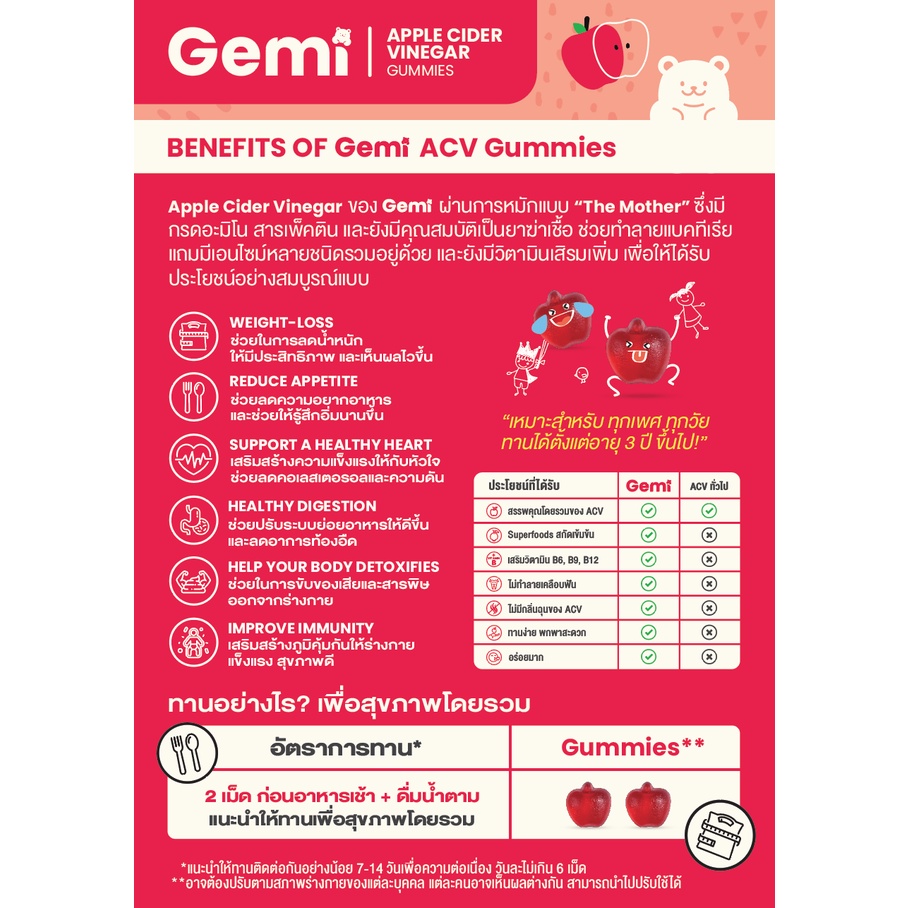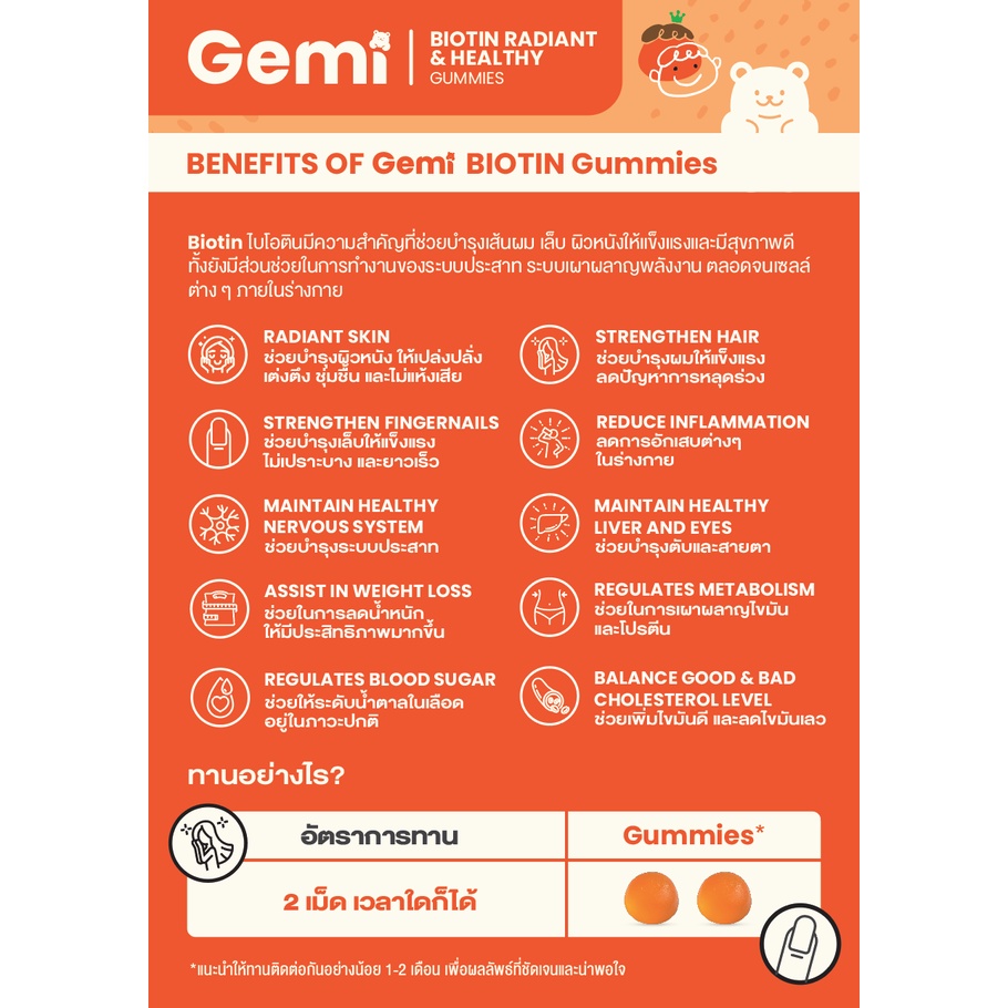 Gemi เจมมี่ ไบโอตินและแอปเปิ้ลไซเดอร์กัมมี่ รวม 2 กระปุก / Gemi Biotin & ACV Gummy / GemiGummi