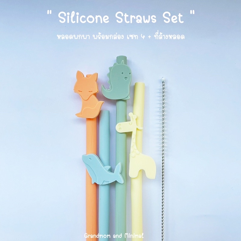 หลอดซิลิโคนเด็ก พกพา พร้อมกล่อง Grandmom (แกรนด์มัม)