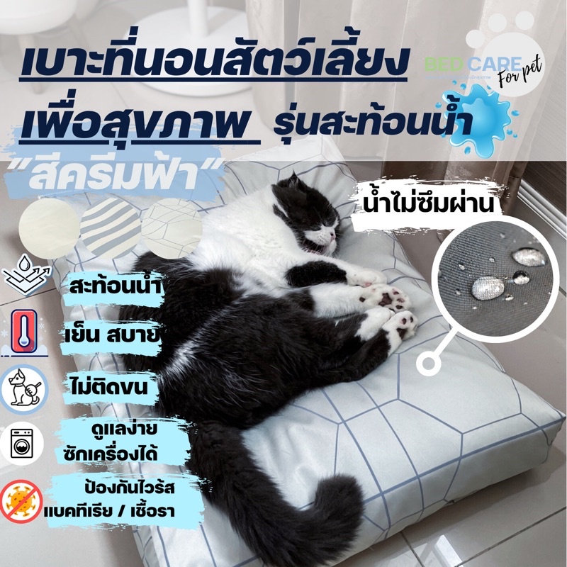 Bed Care For Pet เบาะนอนสัตว์เลี้ยงเพื่อสุขภาพ สัมผัสเย็น ป้องกันไรฝุ่น ไม่ติดขน "รุ่นสะท้อนน้ำ" สีครีมฟ้า ส่งฟรี 🔥