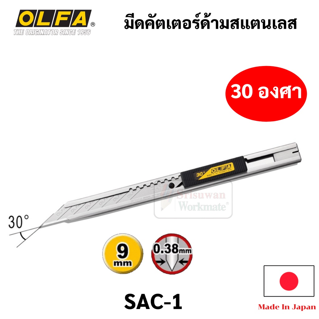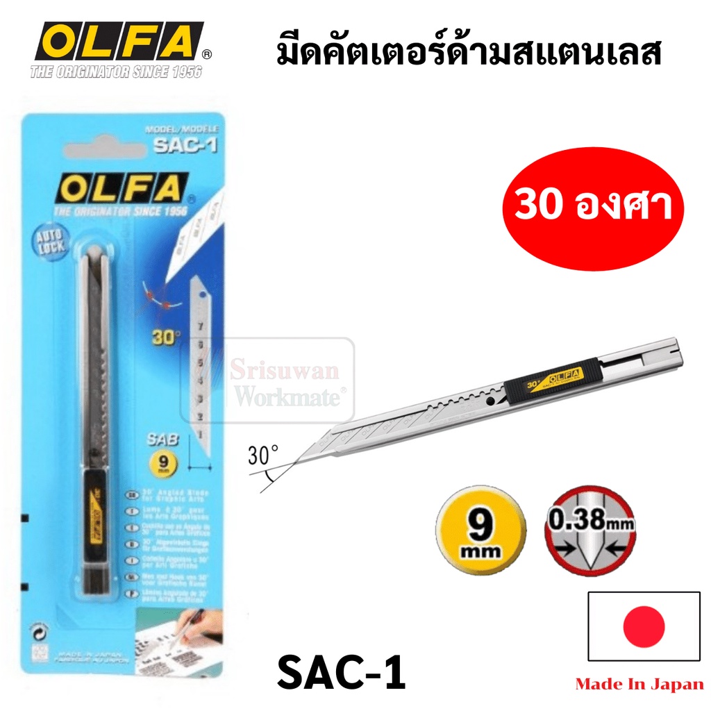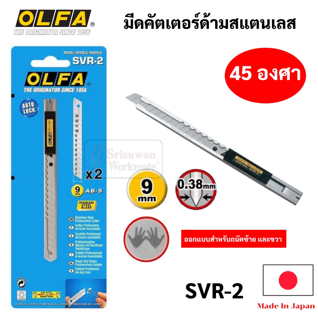 OLFA คัตเตอร์ Stainless Steel แท้ Made in Japan สินค้าญี่ปุ่น ใบมีด 9 มม. (Size S) 45 / 30 องศา รุ่น SVR-2 / SAC-1 โอฟ่า