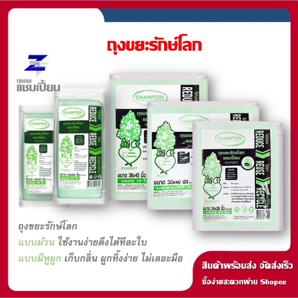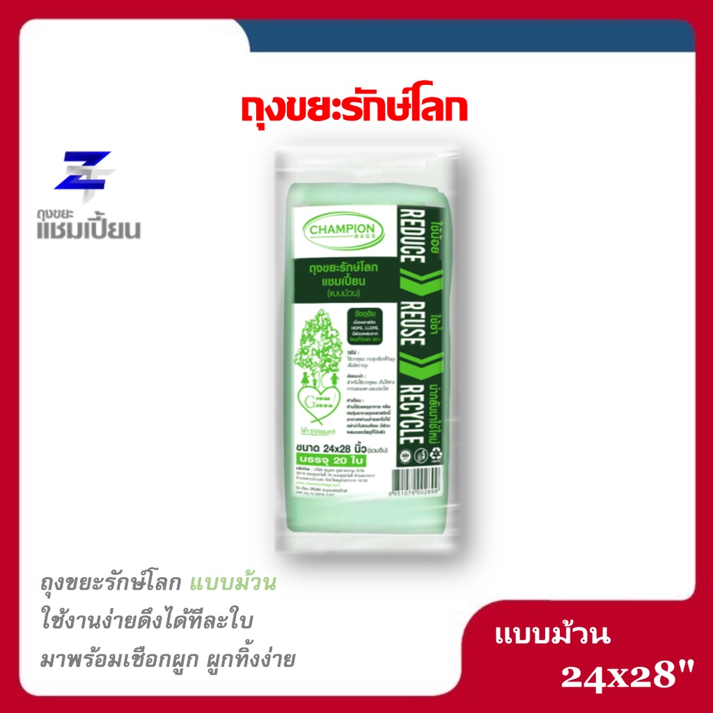 ถุงขยะรักษ์โลก Champion Bags รุ่นรักษ์โลก แบบม้วนและ แบบหูผูก มีครบทุกรุ่น