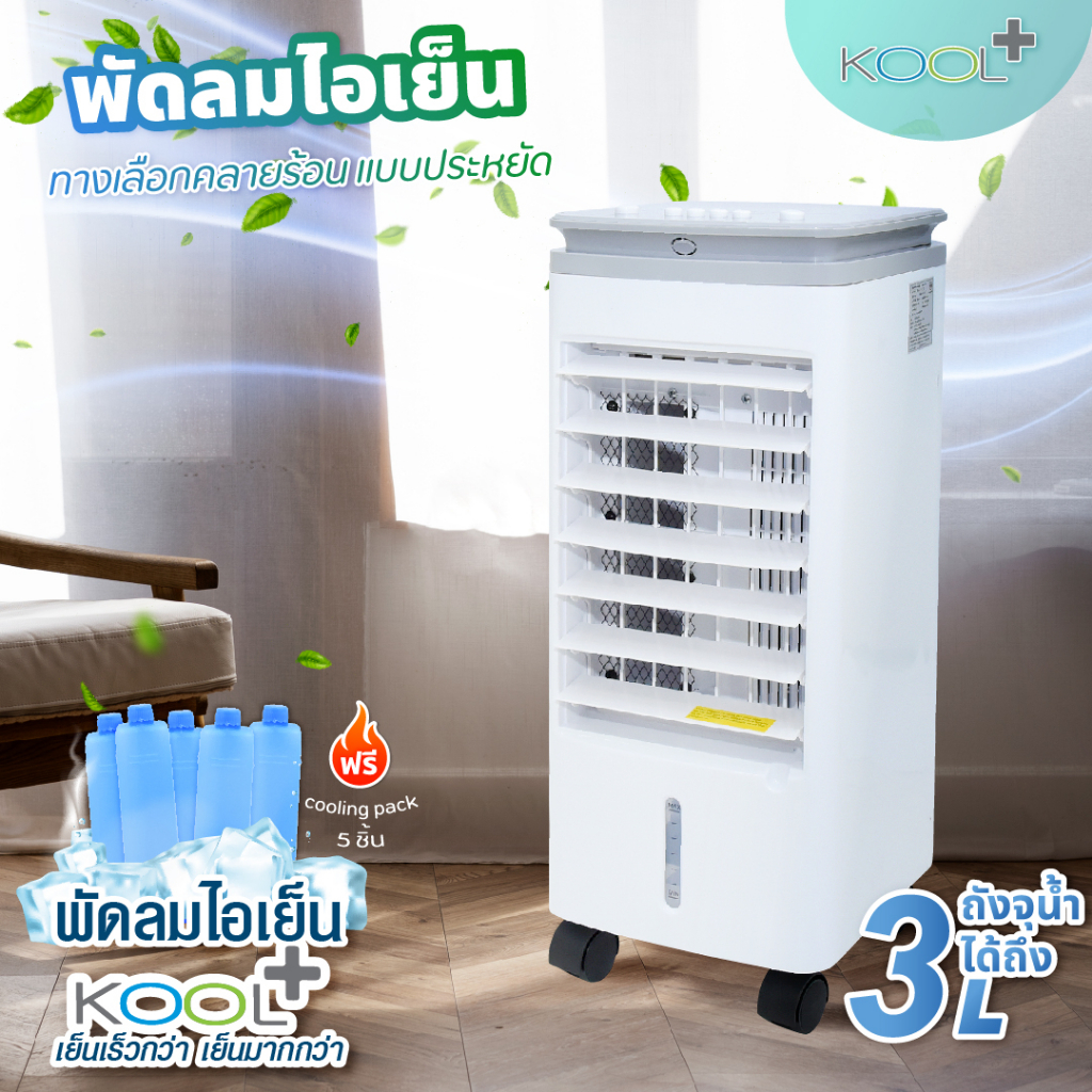[โค้ดไลฟ์ลดสูงสุด50%] KOOL+พัดลมไอเย็นแพ็คคู่ 1 แถม 1 รุ่น AV-514 แถมฟรี cooling pack 4 ชิ้น/ตัว