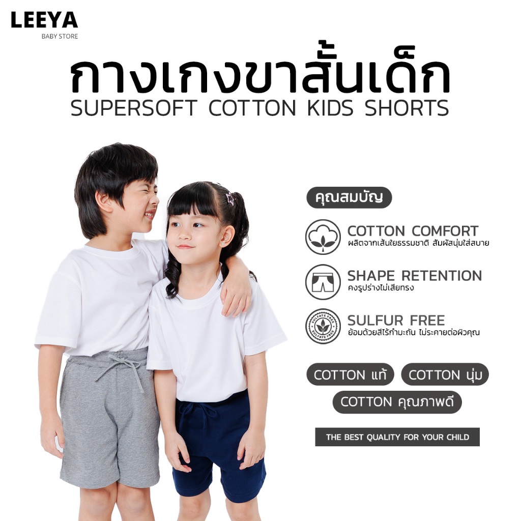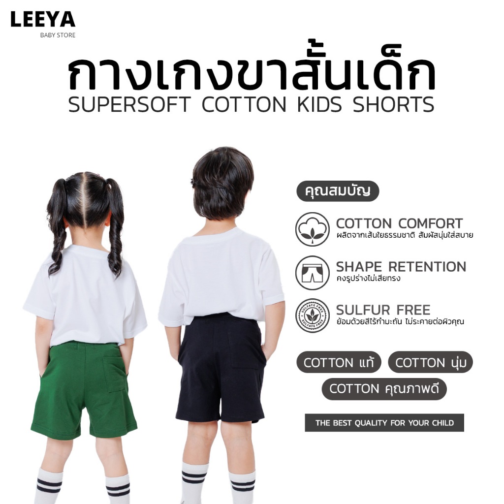 Leeya กางเกง ขาสั้นเด็ก ผู้หญิง ผู้ชาย UNISEX เนื้อผ้านุ่ม สวมใส่สบาย 100% Cotton Supersoft Baby & Kids Shorts CS