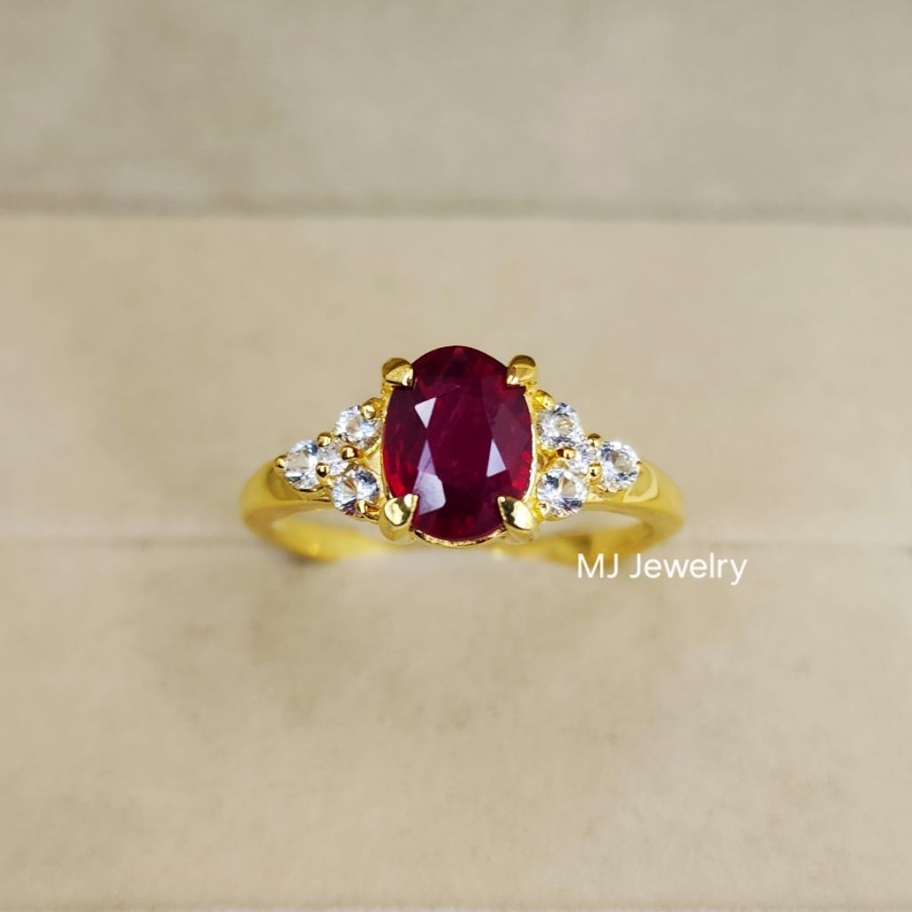 แหวนพลอยทับทิม พลอยไพลิน ขนาด 8×6 มิล ประดับพลอยเพทายขาว แหวนเงินแท้ 925 รับประกันพลอยแท้ จากจันทบุรี