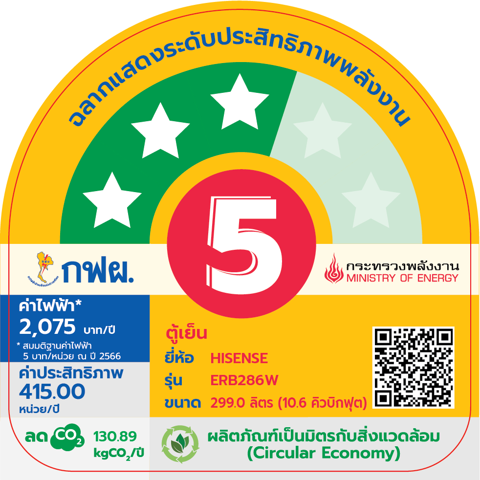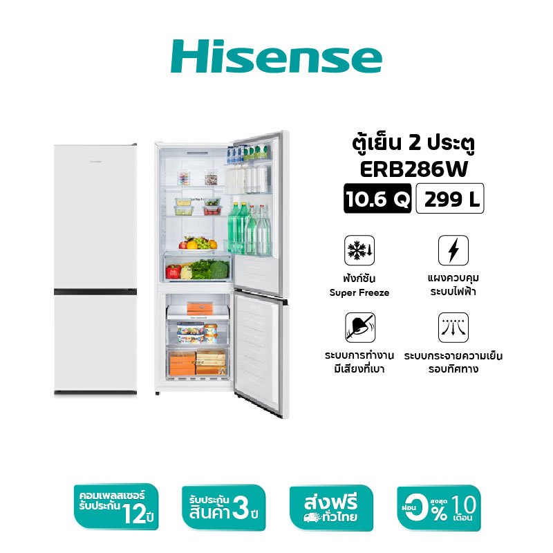 Hisense ตู้เย็น 2 ประตู ขนาด 10.6 Q/299 ลิตร รุ่น ERB286W