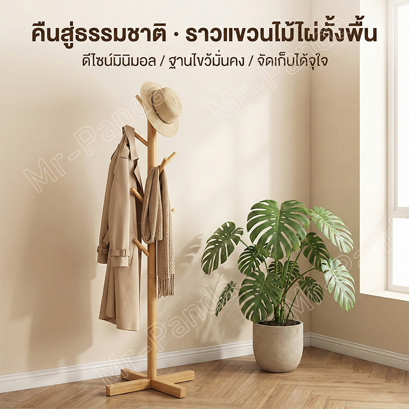 ที่แขวนกระเป๋า ราวตากผ้า ทำจากไม้สนธรรมชาติ คุณภาพสูง ราวแขวน รับน้ำหนักได้สูงสุด 50กก แขวนเสื้อได้ ประหยัดพื้นที่