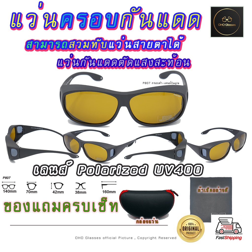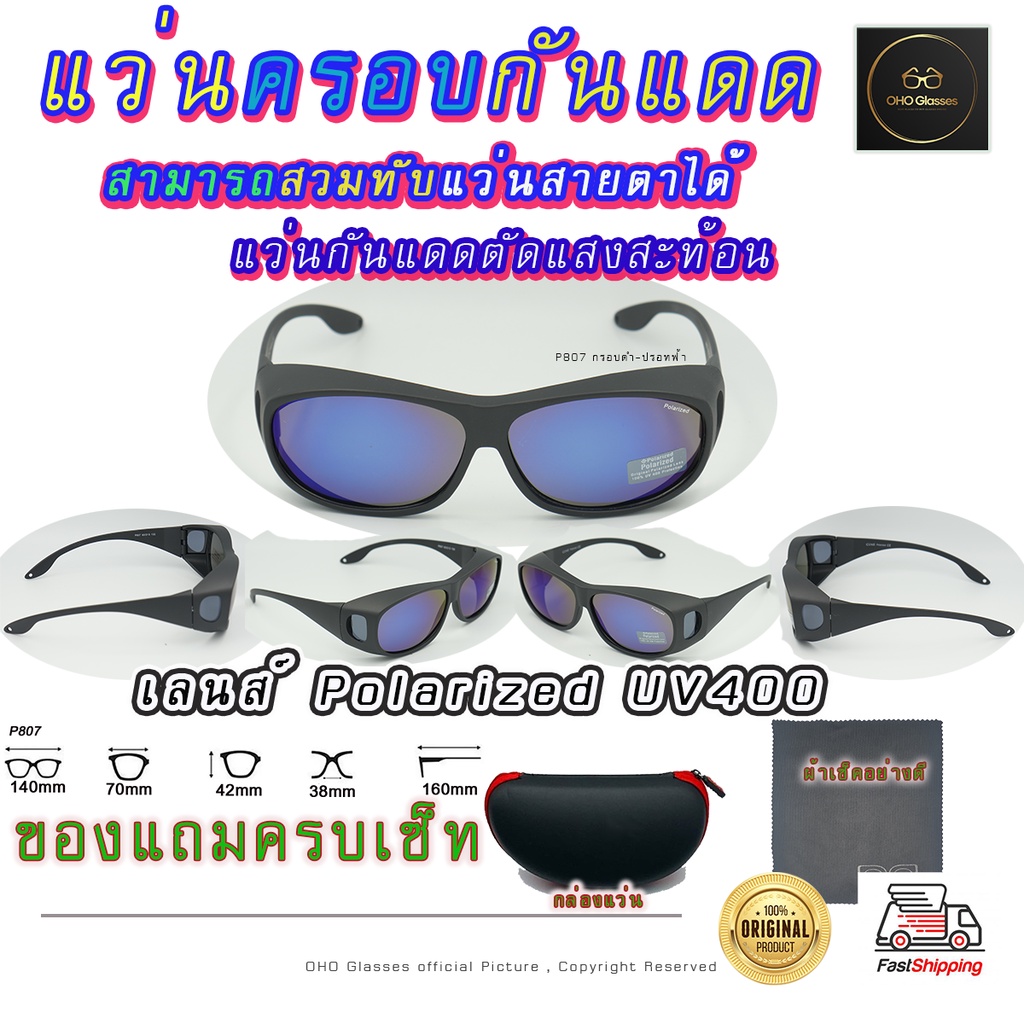 แว่นกันแดด Fit Over เลนส์ Polarized โพลาไรซ์ ป้องกันรังสียูวี(UVA และ UVB) ครอบแว่นสายตา สวบทับ กันลม D