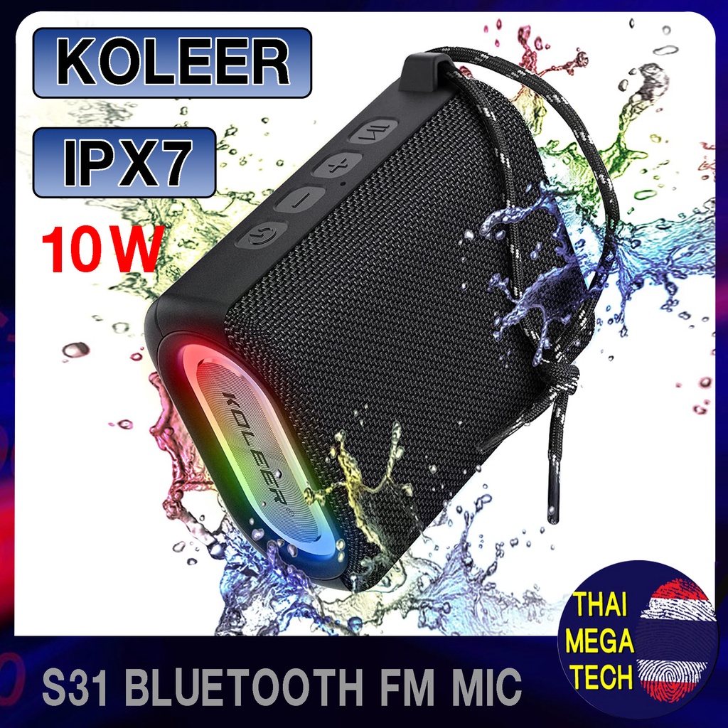 KOLEER S31 ลำโพงบลูทูธ กันน้ำ 10W FM/AUX/USB/TF เหมาะสำหรับสายเที่ยว