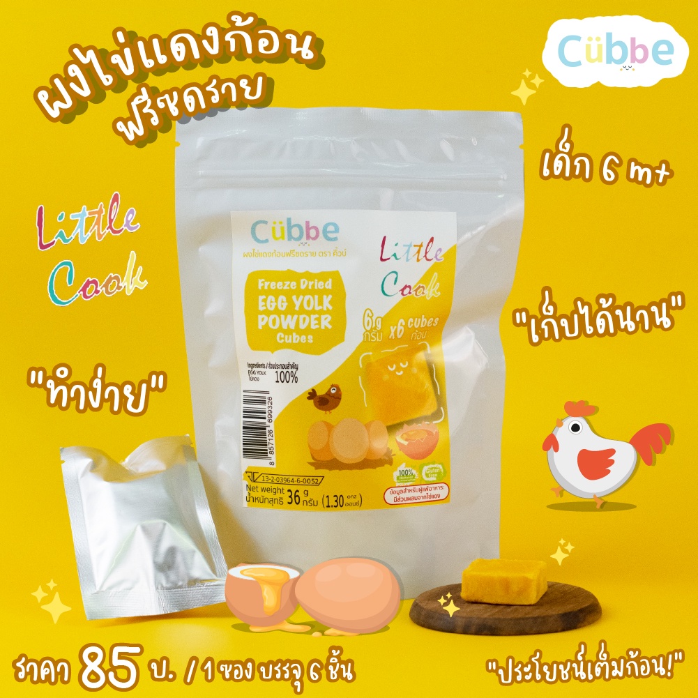 Cubbe - ผงไข่แดงก้อนฟรีซดราย ซองใหญ่ (Freeze Dried Yolk Powder - Cubbe) 6 เดือน+