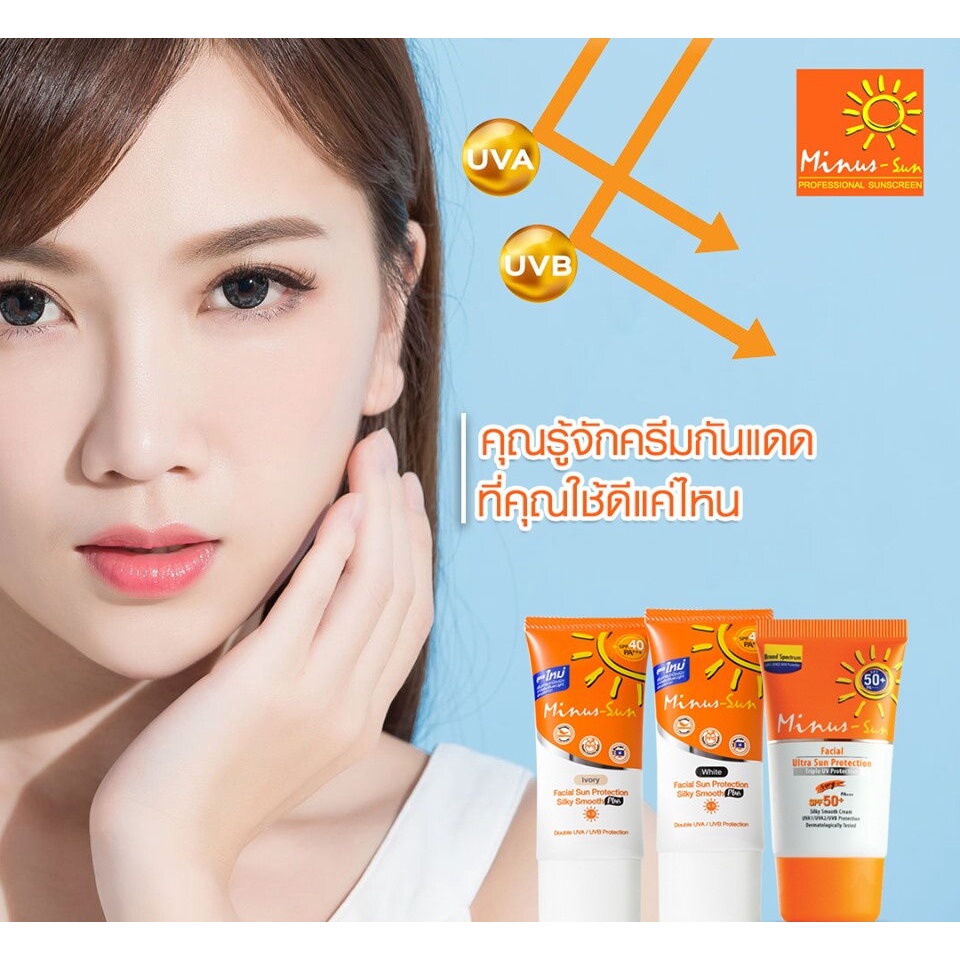 Minus Sun Facial Sun Protection SPF40 PA+++ 30g. สีขาว / สีเนื้อ ไมนัสซัน เฟเชียล ซัน โพรเทคชั่น