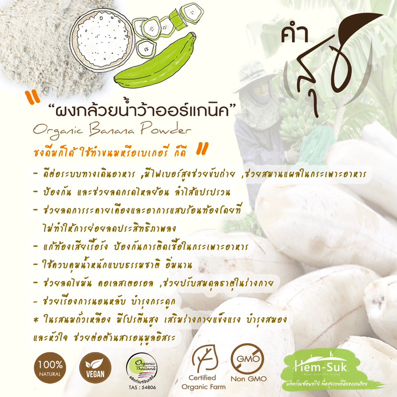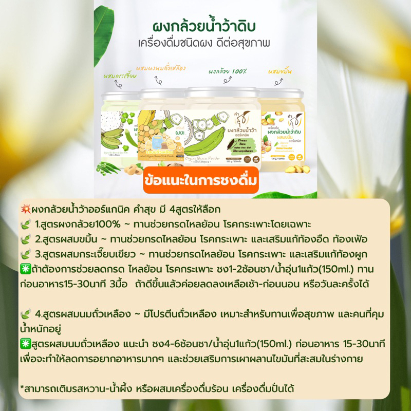 ใหม่💥ผงกล้วยน้ำว้าดิบผสมกระเจี๊ยบเขียวออร์แกนิค ตราคำสุข ตัวช่วยลดกรดไหลย้อน ป้องกันโรคกระเพาะ
