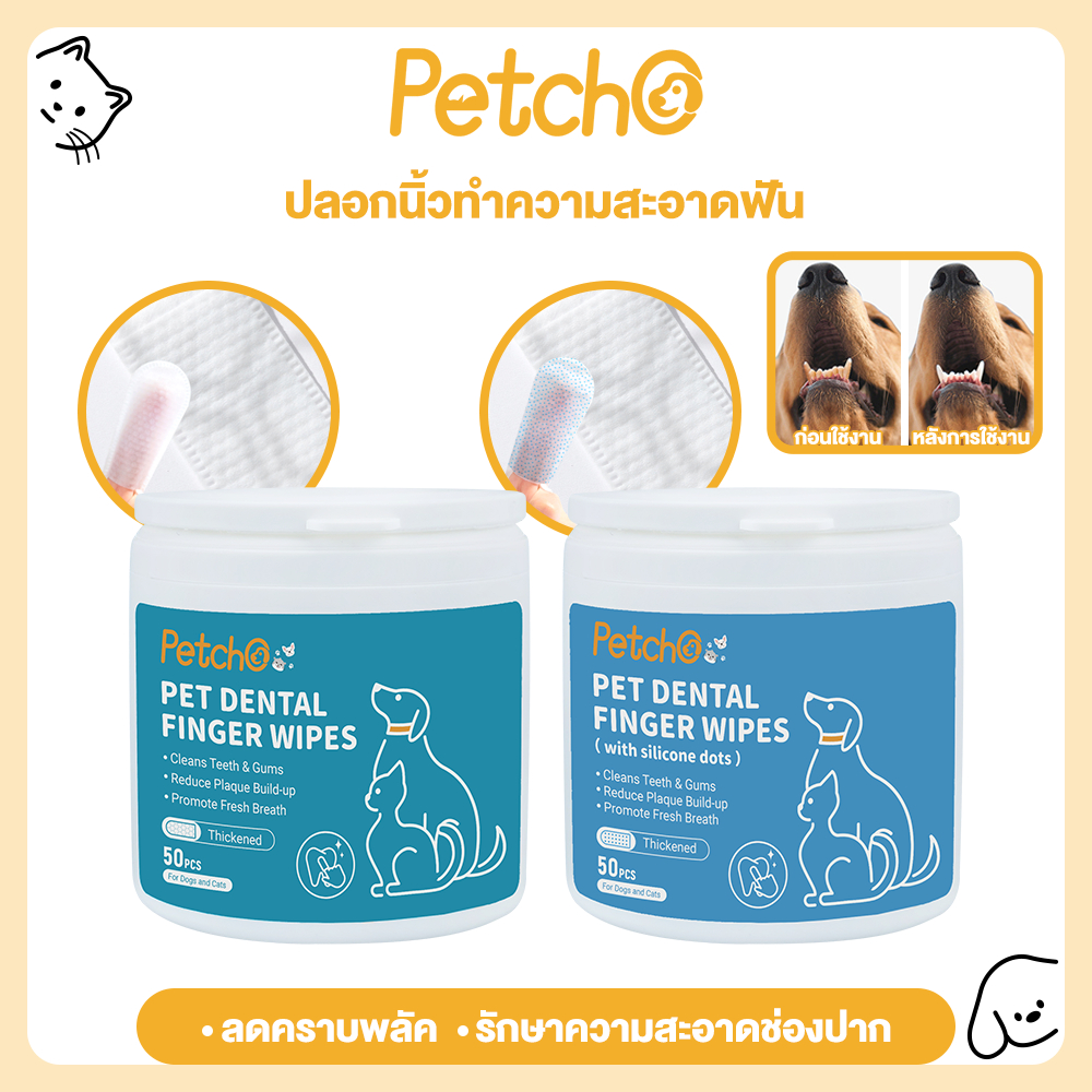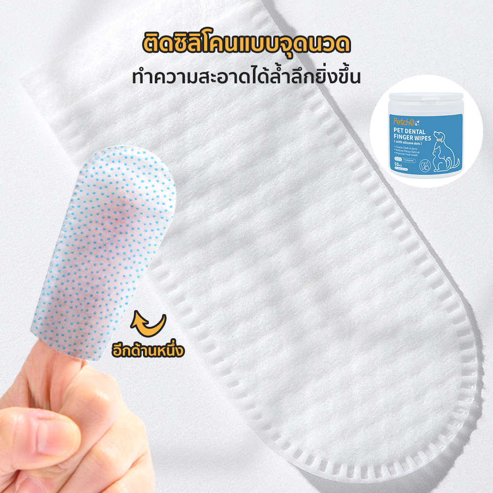 Petcho ผ้าเช็ดทำความสะอาดสัตว์เลี้ยง แปรงฟัน ผ้าเช็ดทำความสะอาดฟันสัตว์เลี้ยง ทำความสะอาดฟัน ไม่รุนแรง 50pcs