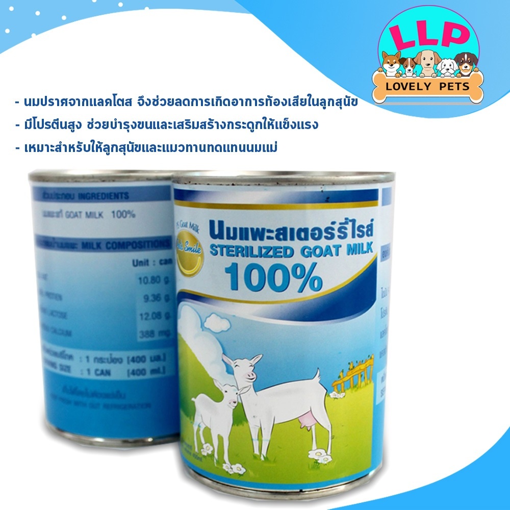 ศิริชัย นมแพะสเตอริไลส์ สำหรับลูกสุนัขและลูกแมว อายุ 2 เดือนขึ้นไป 400มล.*12กระป๋อง