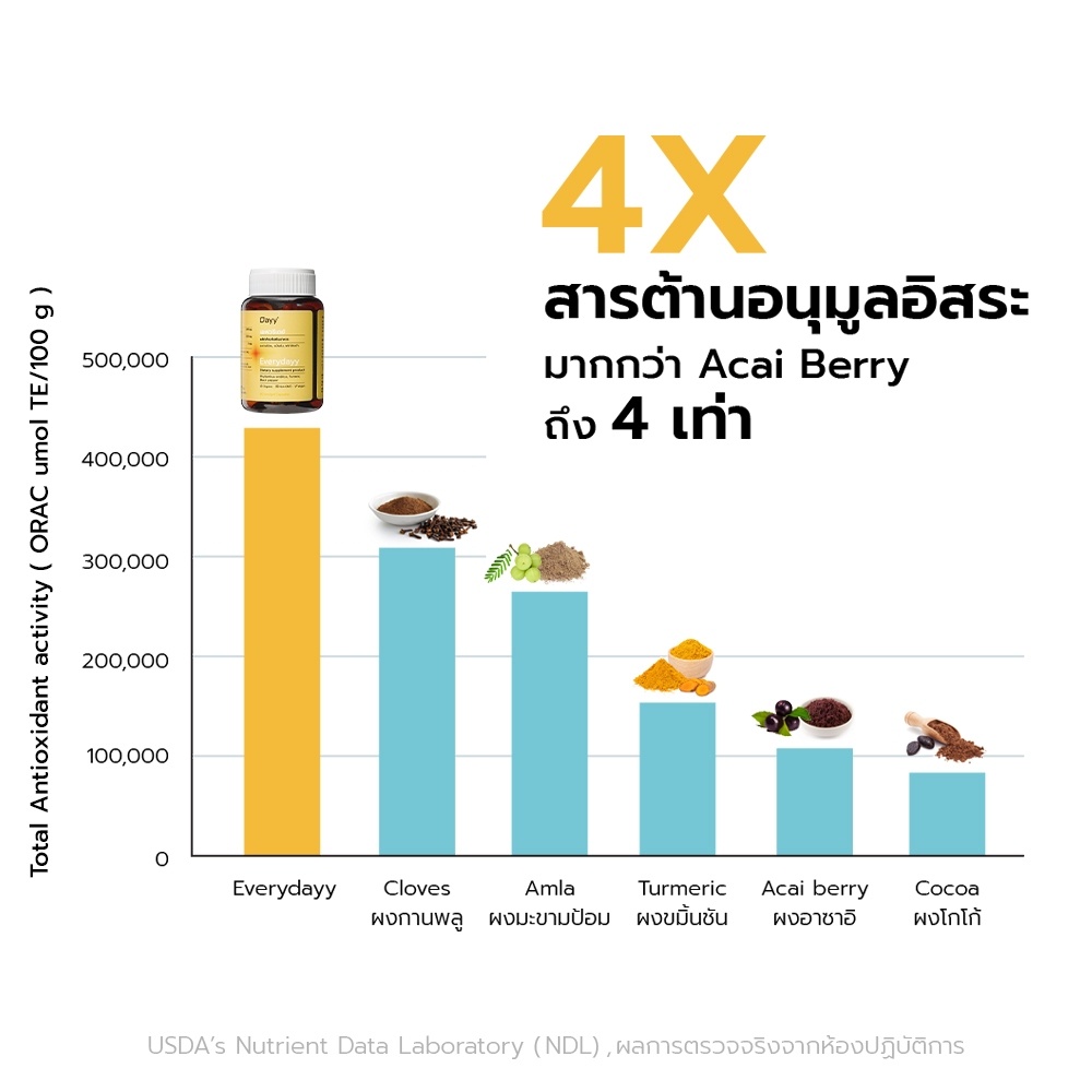 Everydayy เอฟวรีเดย์ ผลิตภัณฑ์เสริมอาหาร ขมิ้นชัน พริกไทยดํา มะขามป้อม ออร์แกนิค 60 แคปซูล/ขวด โดย Khaolaor ขาวละออ