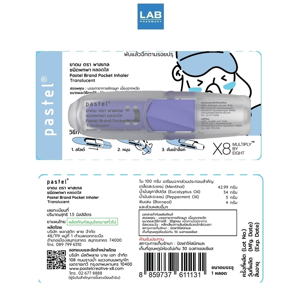 [ สุ่มคละสี ] PASTEL Brand Pocket Inhaler 1.5ml - ยาดม ตรา พาสเทล ชนิดพกพา จำนวน 1 ชิ้น