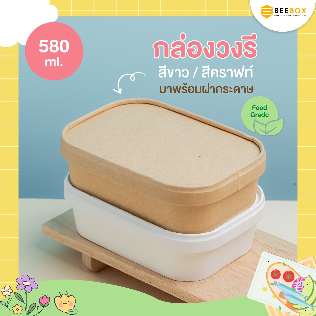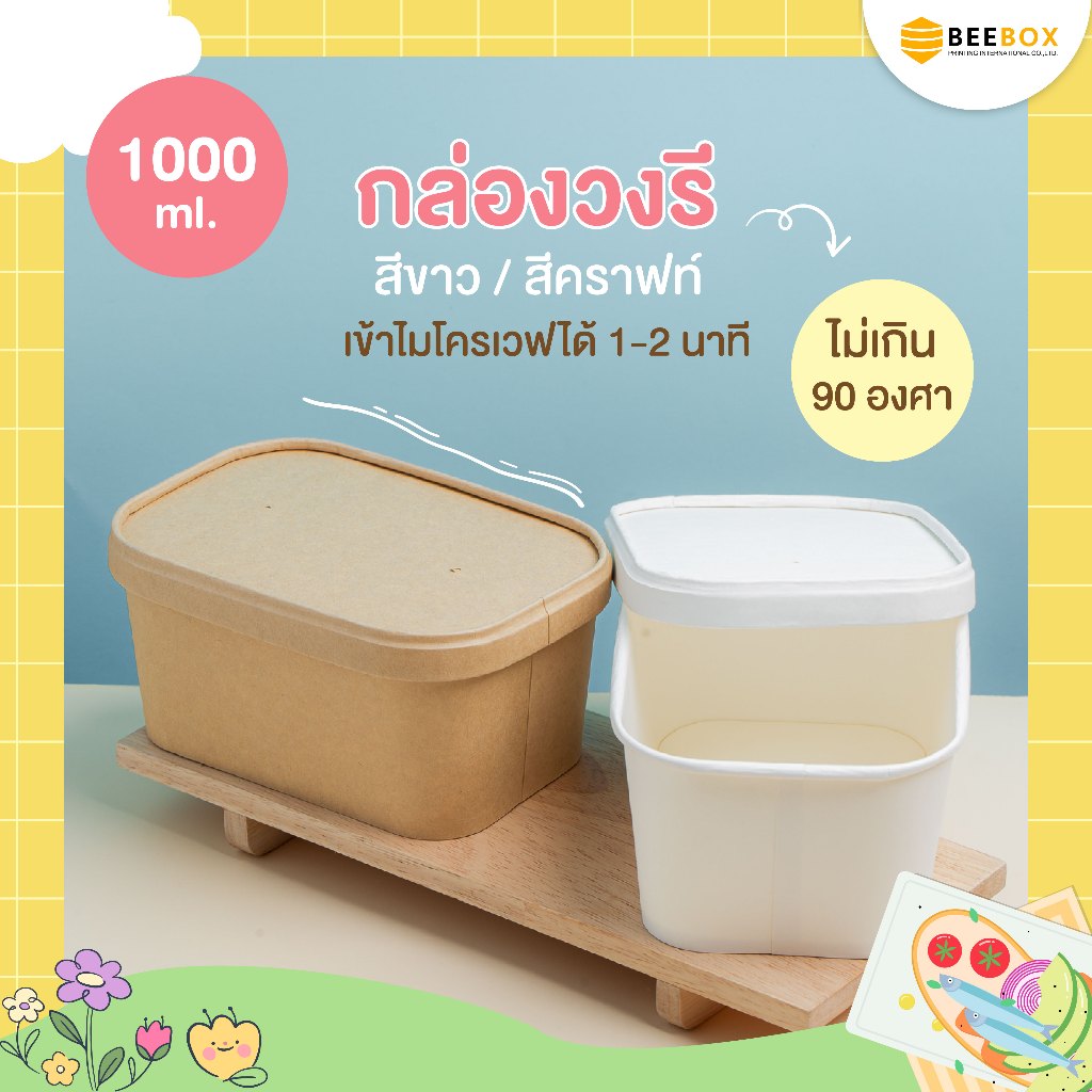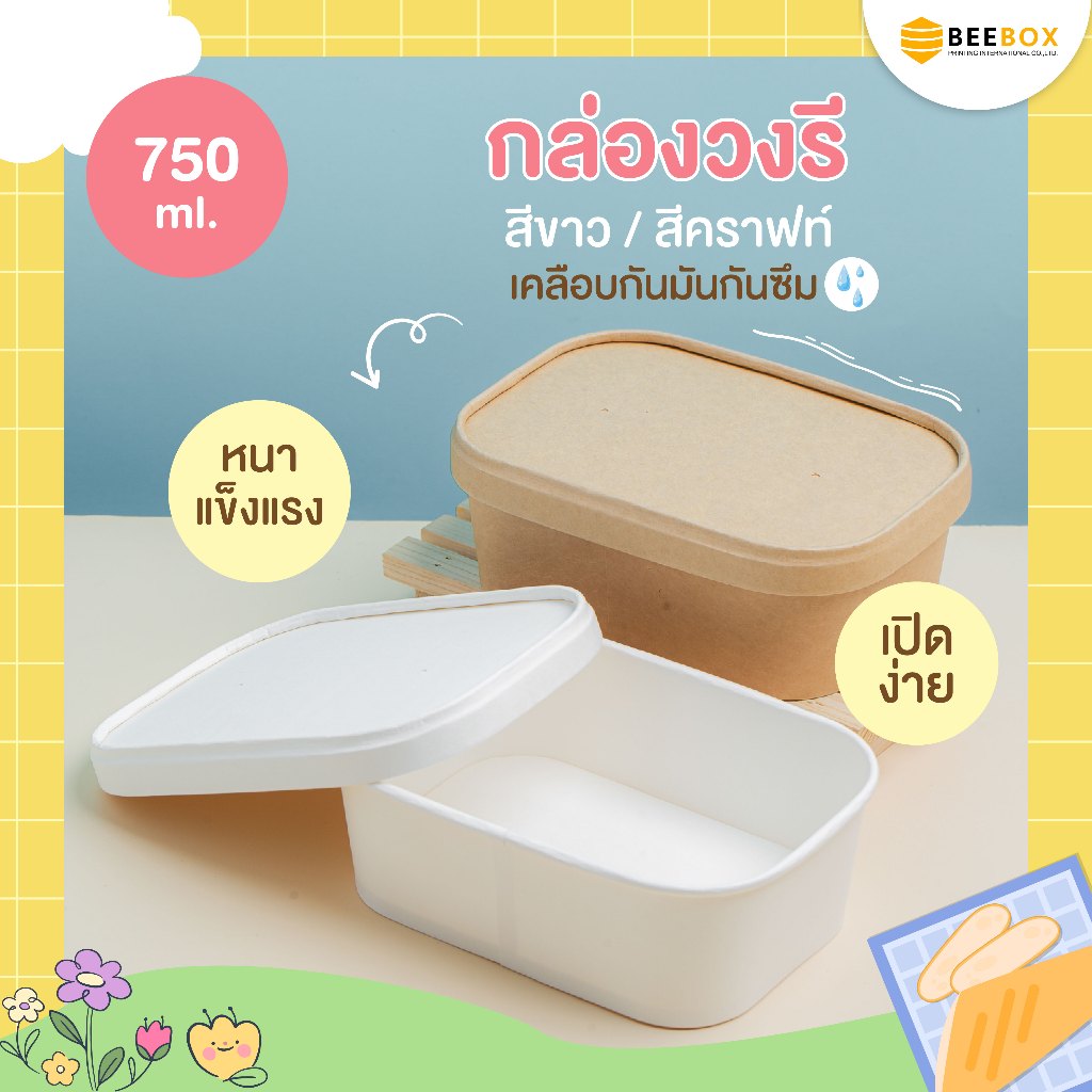 กล่องอาหารทรงวงรี เข้าไมโครเเวฟและตู้เย็นได้ เคลือบกันมันกันซึม (1แพ็ค : 25 ชุด) ราคารวมฝาแล้ว