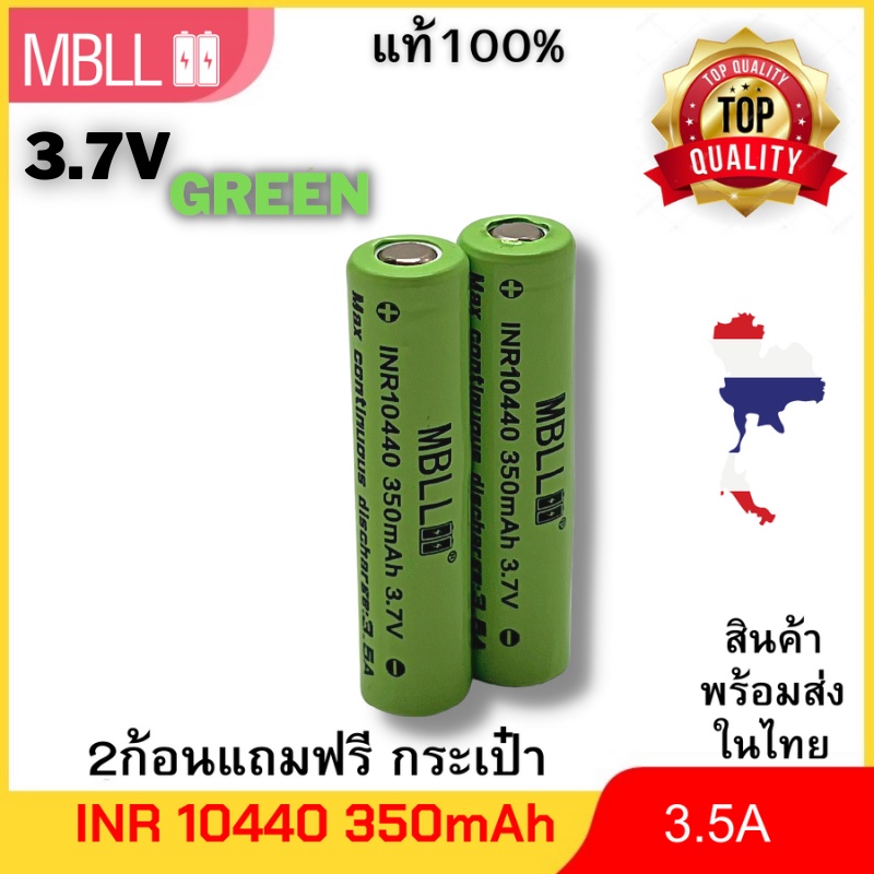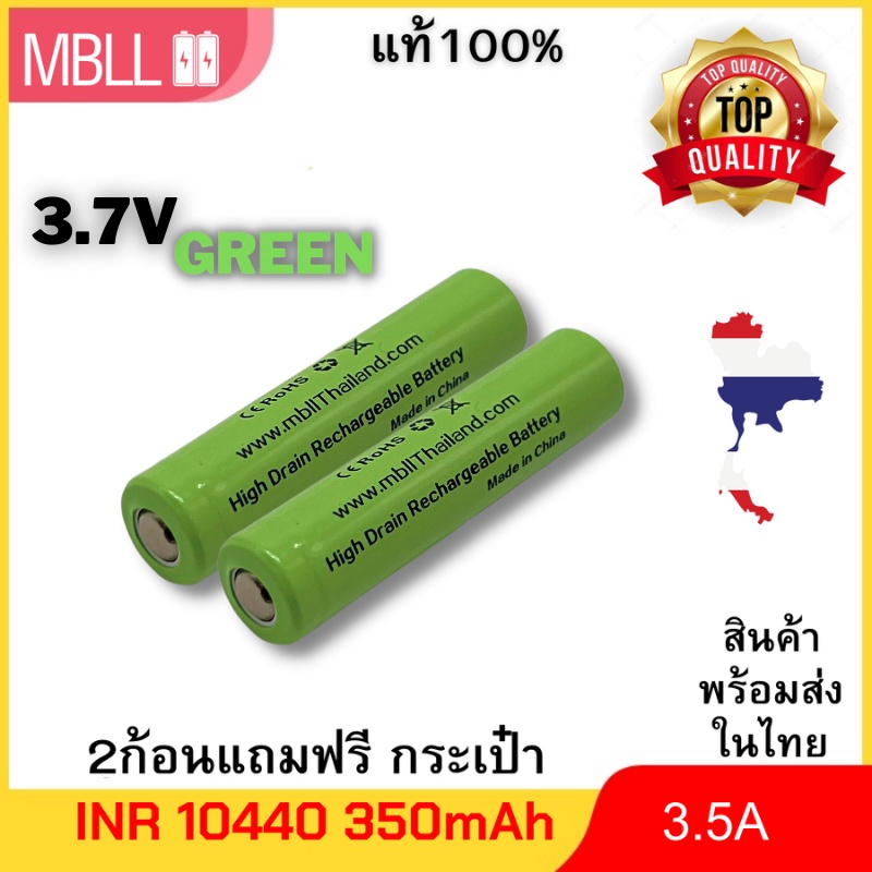 แบตเตอรี่ MBLL INR 10440 350mah 3.5A หัวเรียบ (ขนาดเท่า AAA) 3.7v ราคาต่อ 2 ก้อน มีแถมกระเป๋า