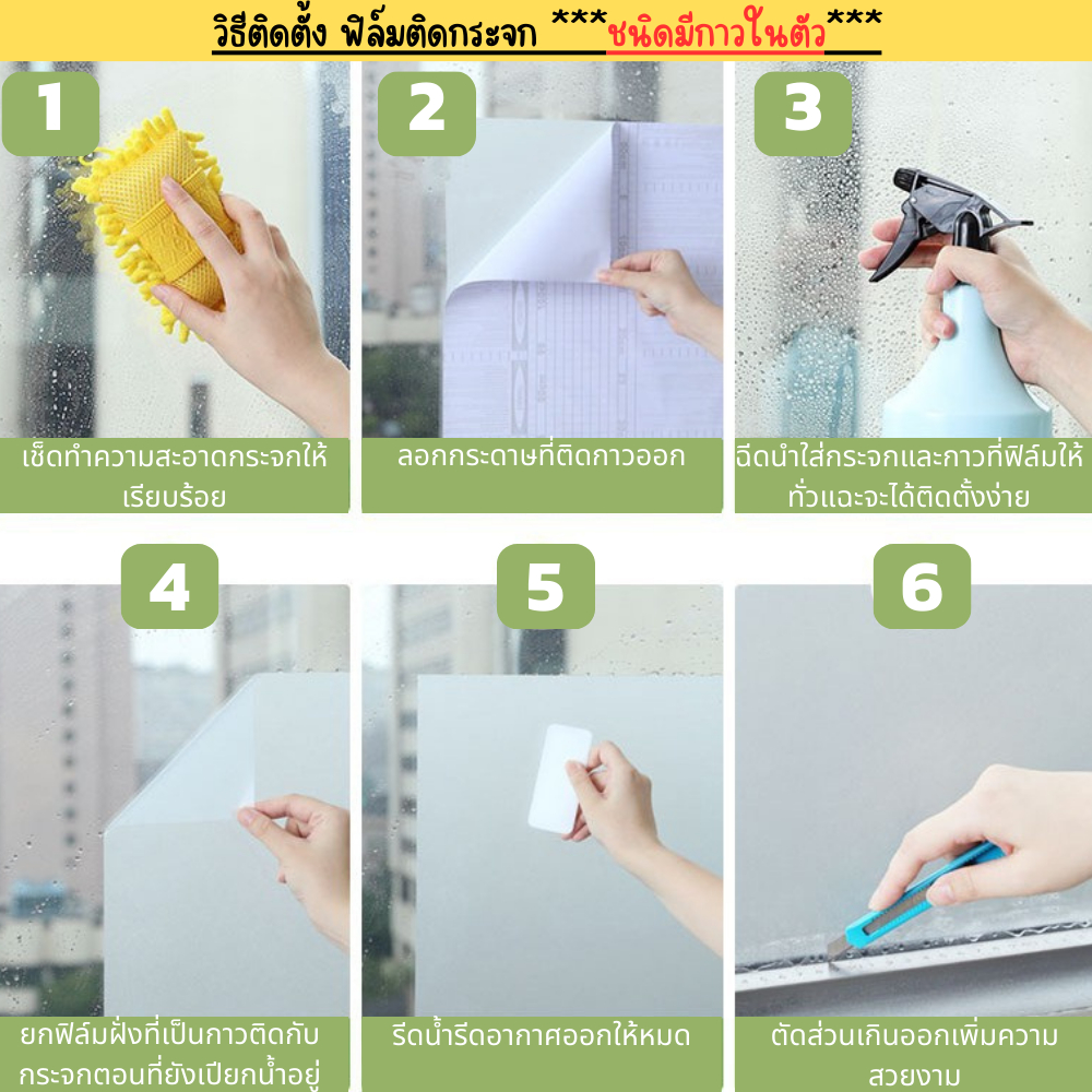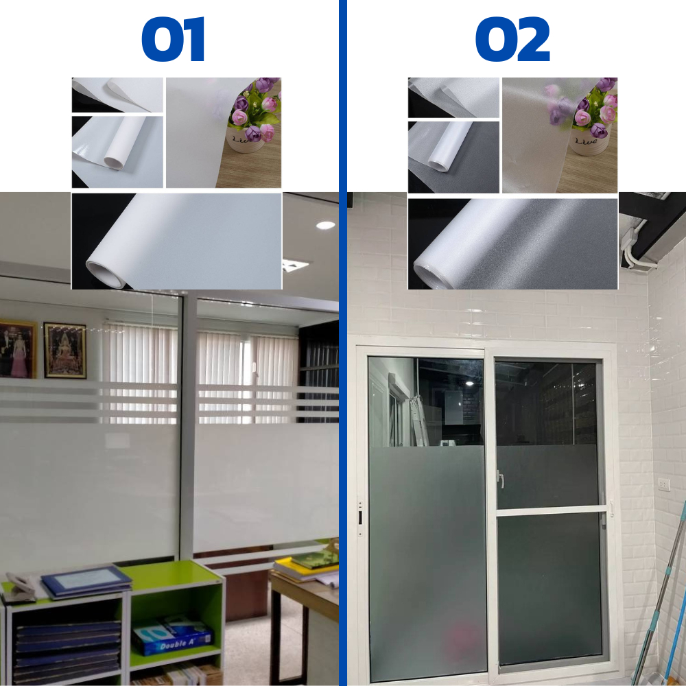 สติ๊กเกอร์ฝ้าติดกระจก ฟิล์มฝ้า เหมาะสำหรับติดกระจกบ้าน ฟิล์มสูญญากาศ และ ฟิล์มมีกาในตัว มีให้เลือกหลากหลายขนาด