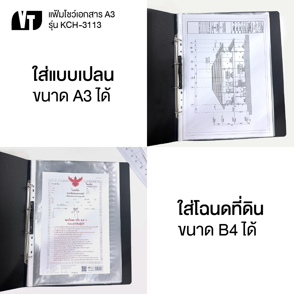 แฟ้ม A3 แฟ้มเอกสาร แฟ้มโชว์เอกสาร แฟ้มใส่แบบ แนวตั้ง เติมไส้ได้ VT2112/KCH-3113 , ไส้แฟ้ม A3 VT2103