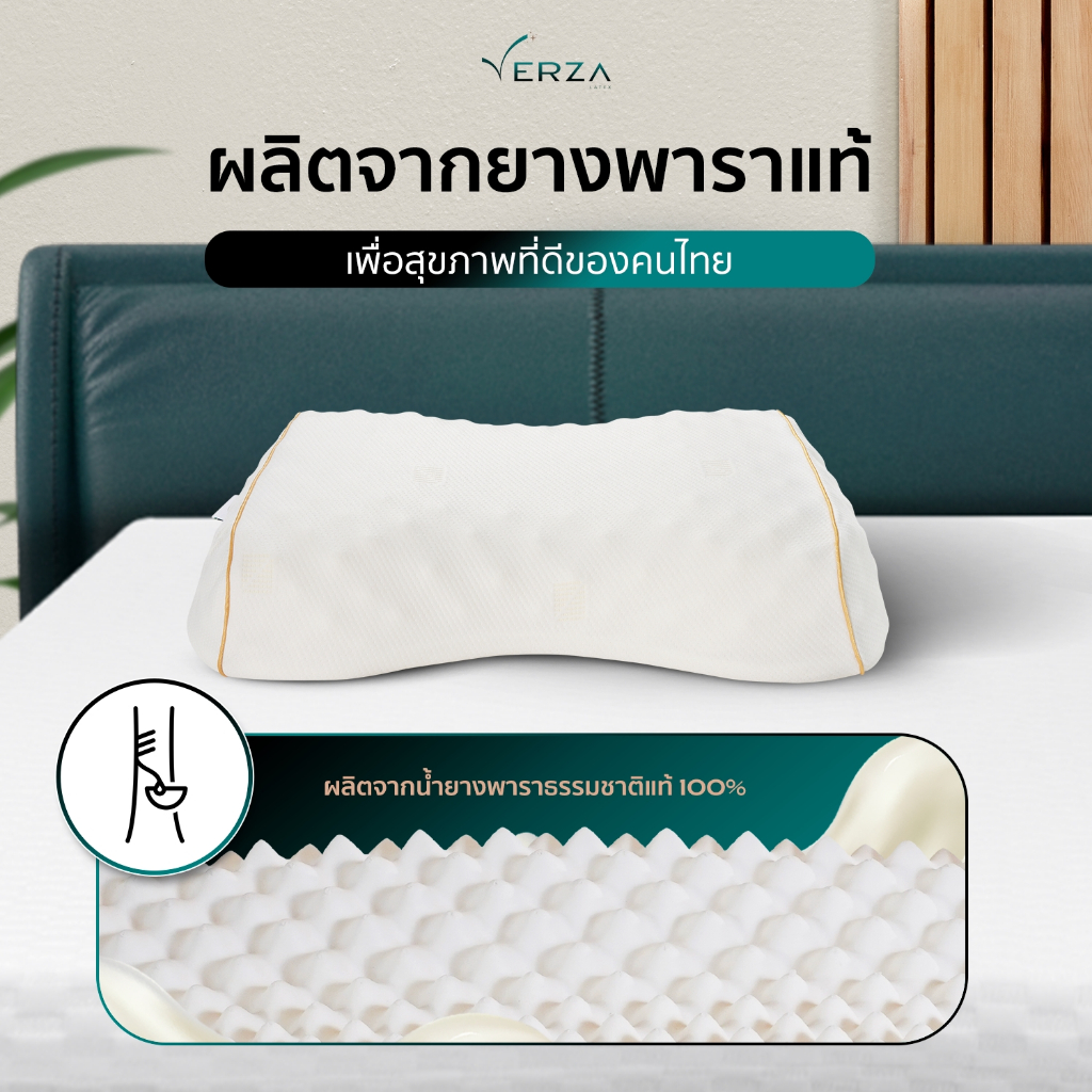 Verza Latex หมอนยางพารา ผลิตจากยางพาราแท้100% พร้อมปลอกขอบสีทอง ติดซิปถอดซักได้ ลดอาการปวดคอ