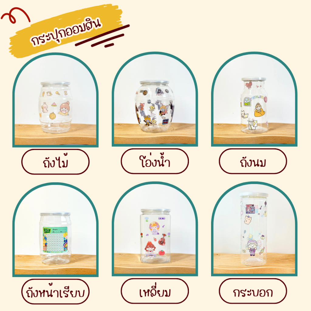 กระปุกออมสิน พลาสติกใส พร้อมสติ๊กเกอร์ตกแต่งน่ารัก