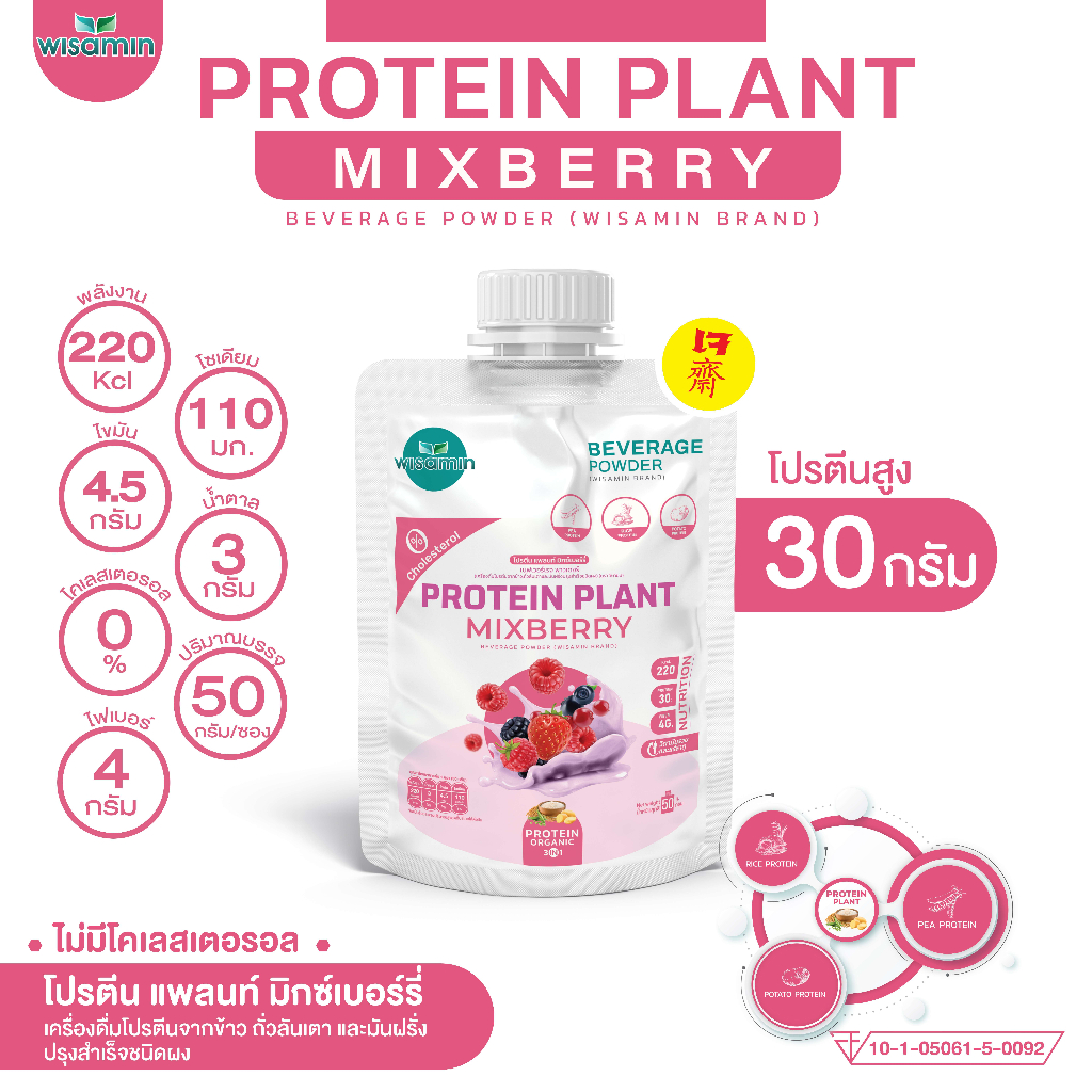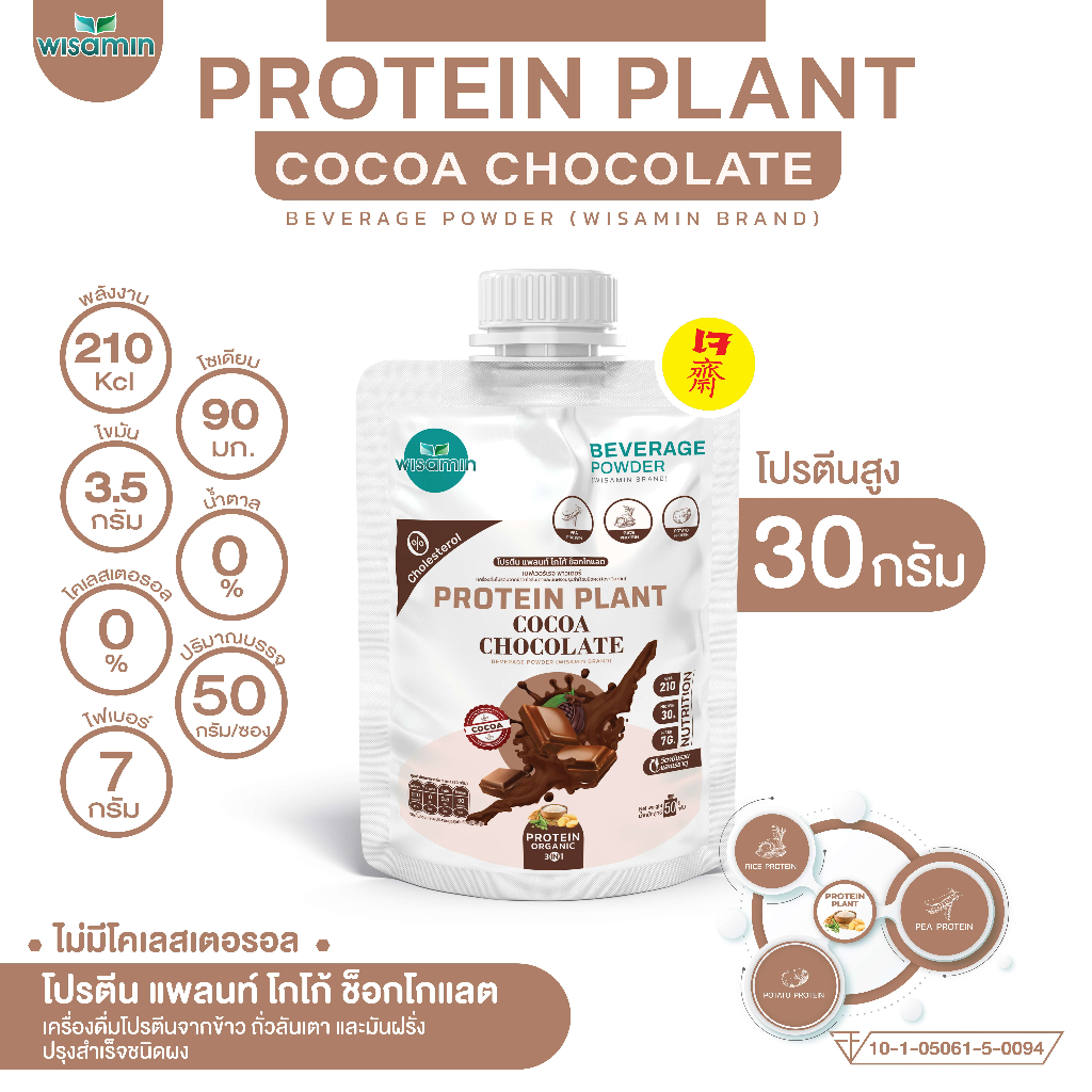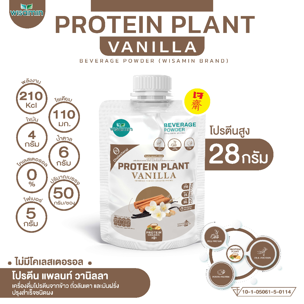 PROTEIN PLANT สูตร 1 โปรตีนแพลนท์ 10 รสชาติ ((ชนิดซอง 50 กรัม)) โปรตีนพืชจากข้าว ถั่วลันเตา มันฝรั่ง ออแกรนิค ตราวิษามิน