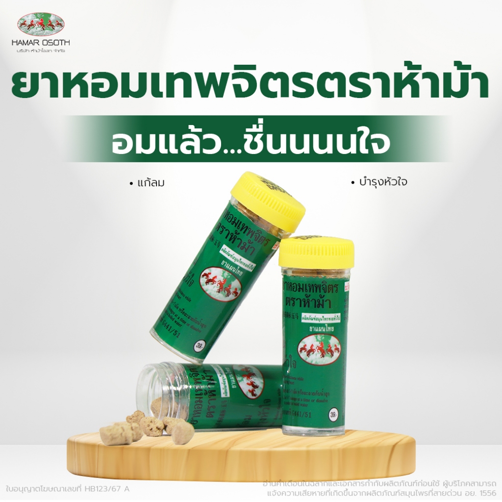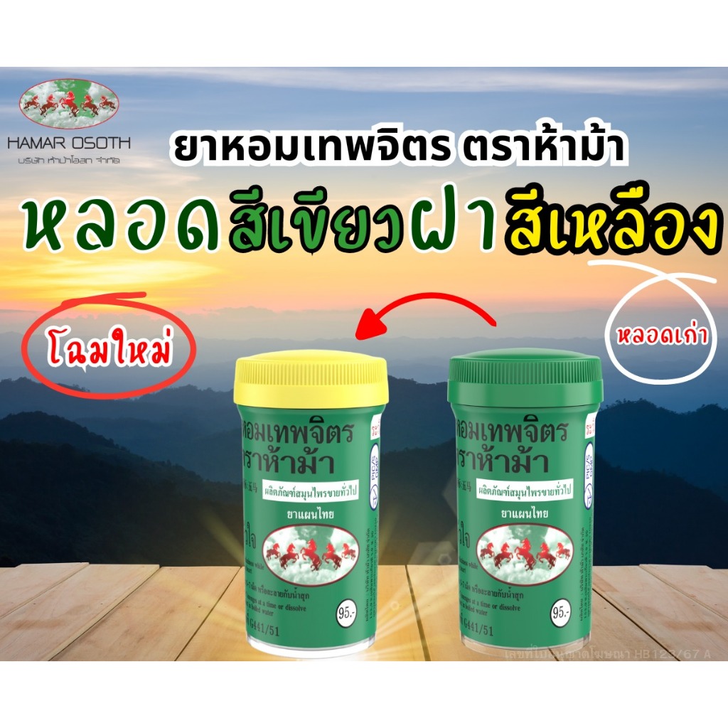 [6 หลอด] ยาหอมเทพจิตร ห้าม้า ---- ฝาเหลือง ตรา 5 ม้า เทพจิตร พร้อมส่ง