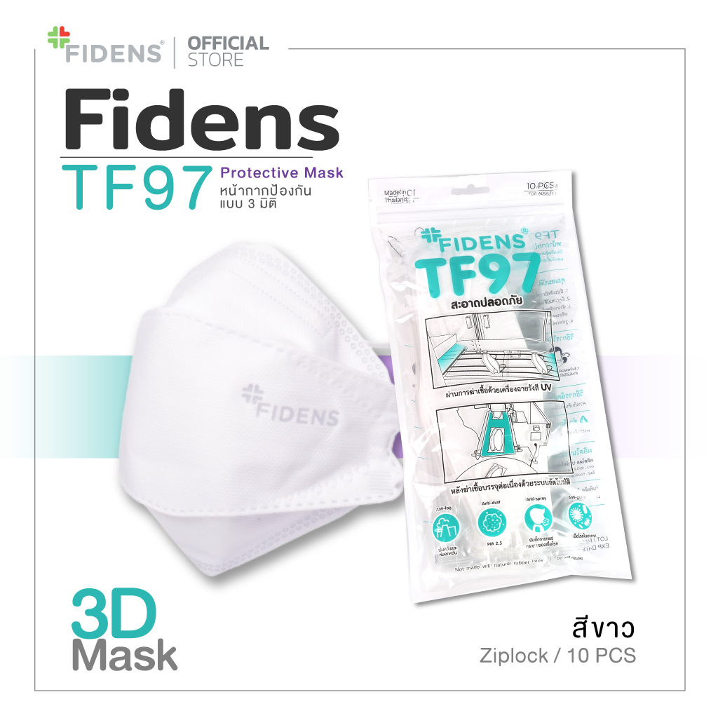 FIDENS MASK ฟิเดนส์ หน้ากากอนามัยทางการแพทย์ 3 มิติ รุ่นTF97 PROTECTIVE MASK (3PLY) (1ซอง : 10 ชิ้น)