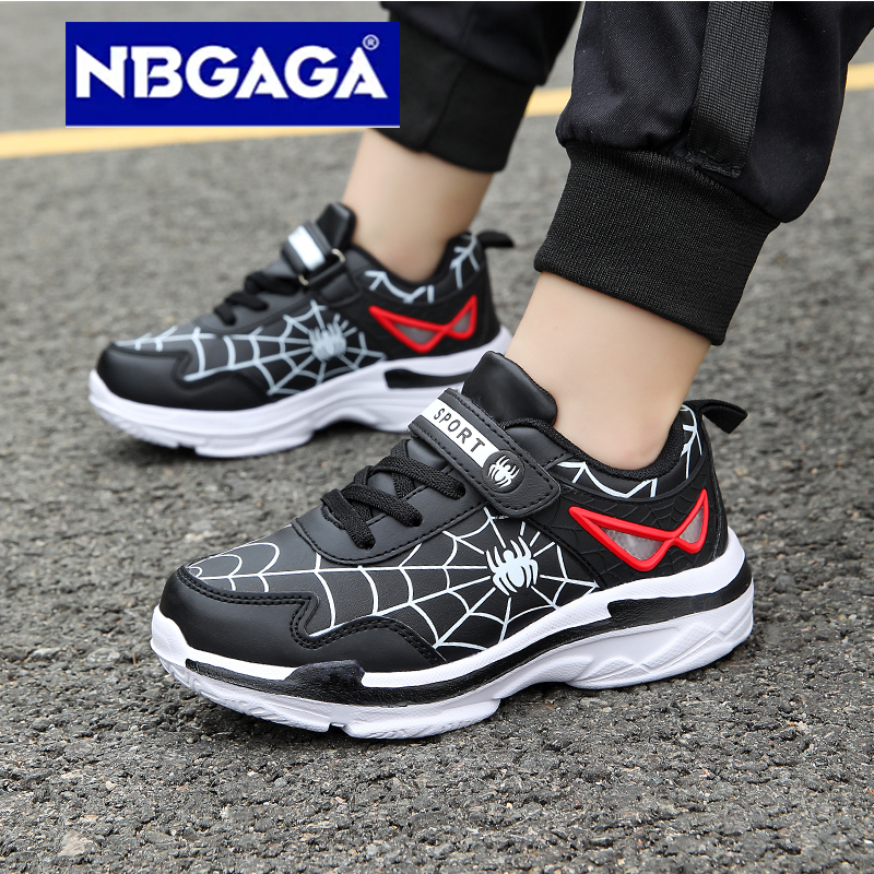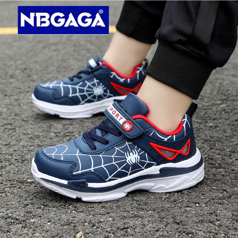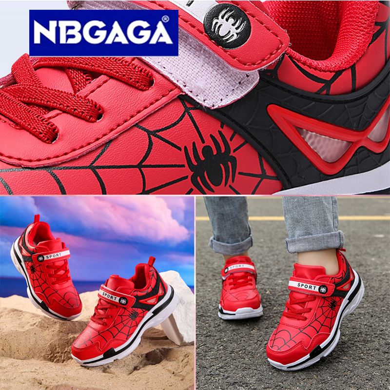 รองเท ้ ากีฬาเด ็ กหนัง PU ลายการ ์ ตูน Spider Man นุ ่ มและกันน ้ ํา ไซส ์ 26-38