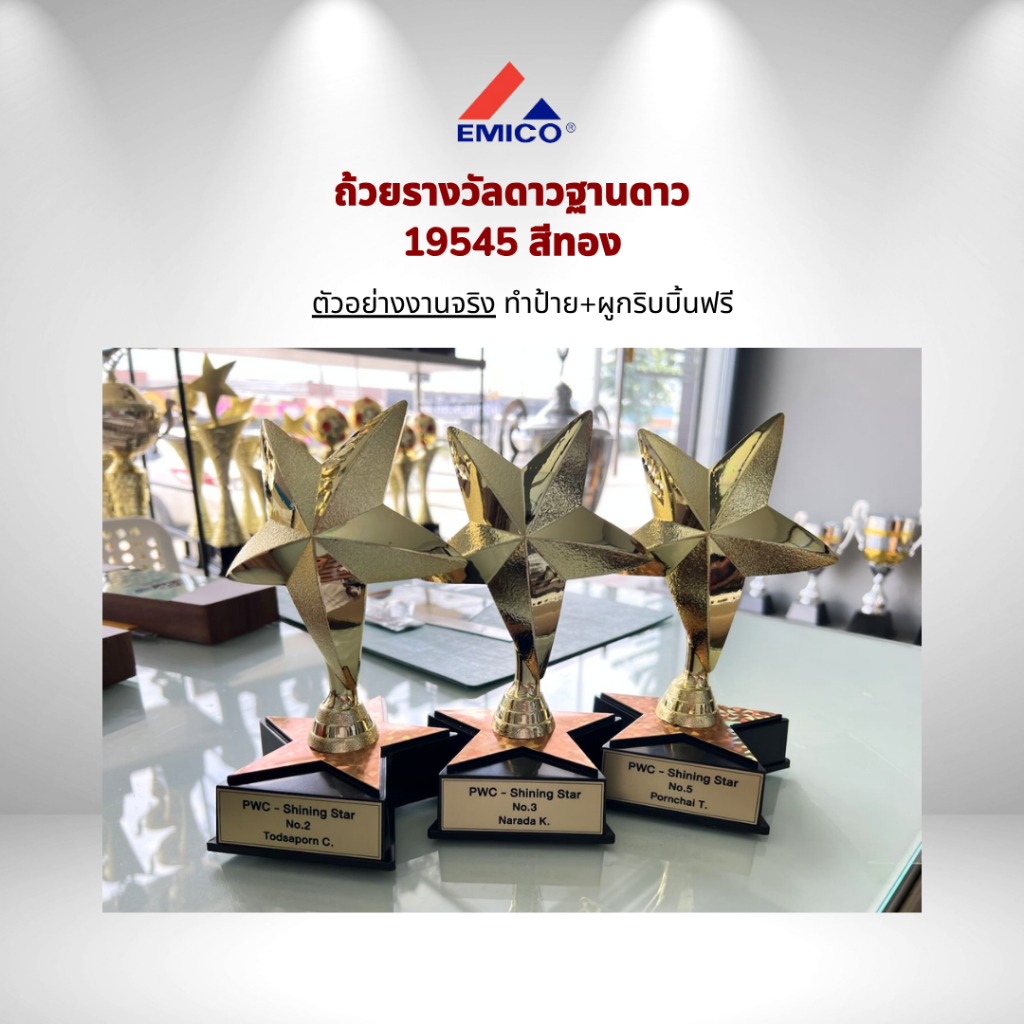 [สินค้าใหม่] ถ้วยรางวัล รางวัล รางวัลชนะเลิศ รูปดาว ฐานดาว ของขวัญ ของที่ระลึก สีทอง ทำข้อความฟรี พร้อมส่ง ส่งไว