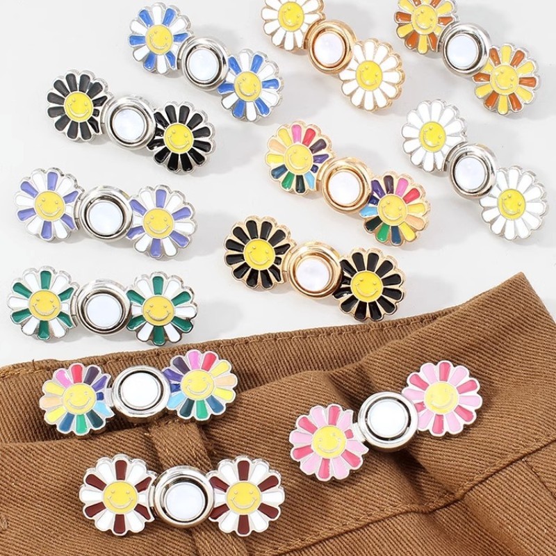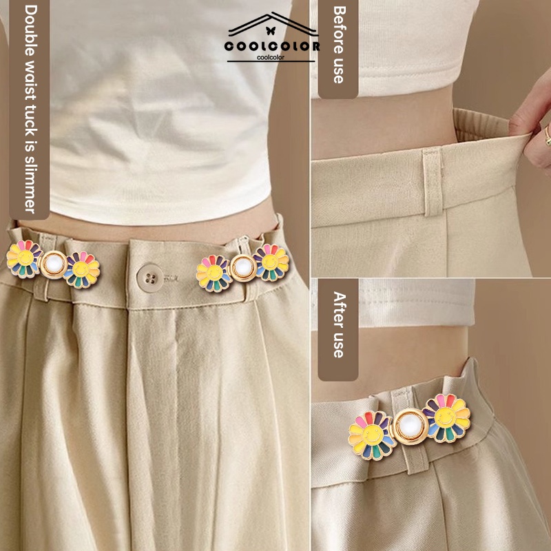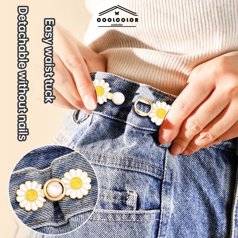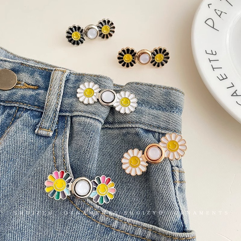 ในไทย💖กระดุมตะขอร่นกางเกงใบหน้ายิ้มแย้มลายดอกไม้เอวแน่นถอดออกได้ปรับได้และใช้งานได้จริง.COD