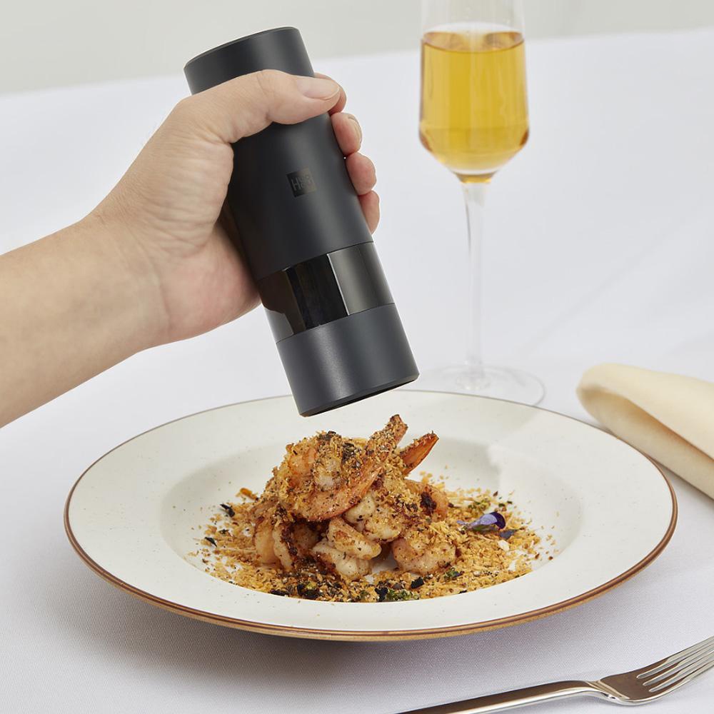 HUOHOU ที่บดพริกไทย Electric Salt Grinder เครื่องบดเกลือและพริกไทยไฟฟ้า พร้อมไฟ LED ปรับได้ 5 ระดับ