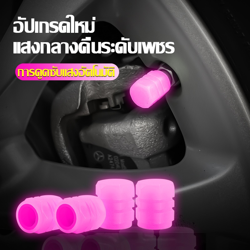 AutoHome ฝาครอบวาล์วยางล้อรถยนต์ เรืองแสงในที่มืด เรืองแสง จุกลมรถยนต์ จุกลมมอเตอร์ไซค์ จุ๊บลมรถยนต์ จุกยางรถยนต์ E47