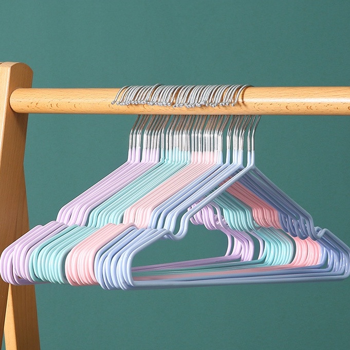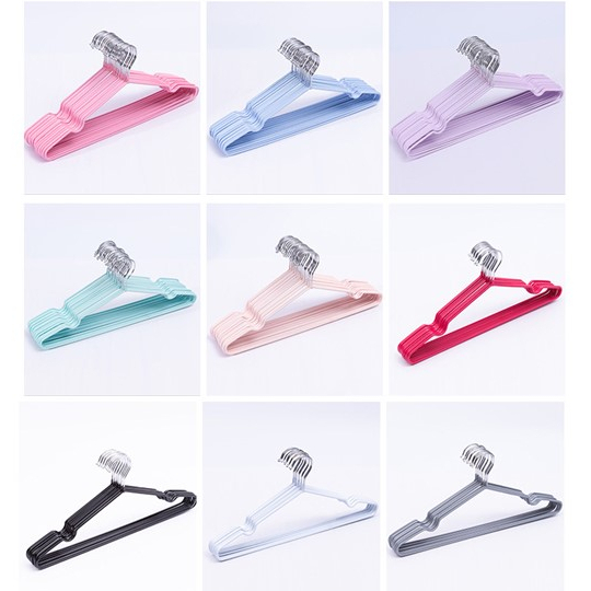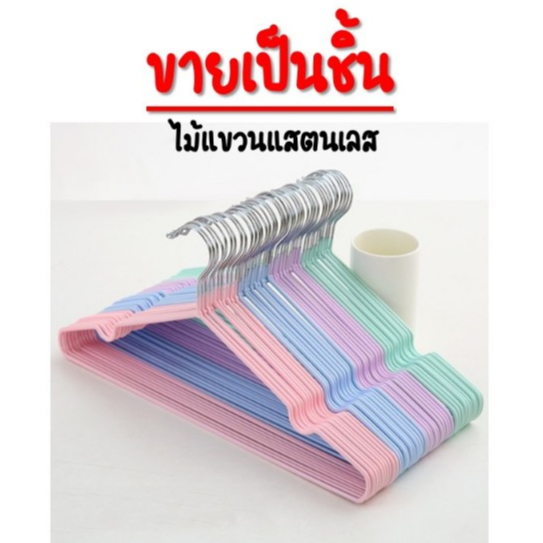 (F-072) ไม้แขวนเสื้อผ้า ไม้แขวนเสื้อสแตนเลสหุ้มยางกันลื่น *ขายเป็นชิ้น* #ไม้แขวนเสื้อ (1x10ชิ้น)