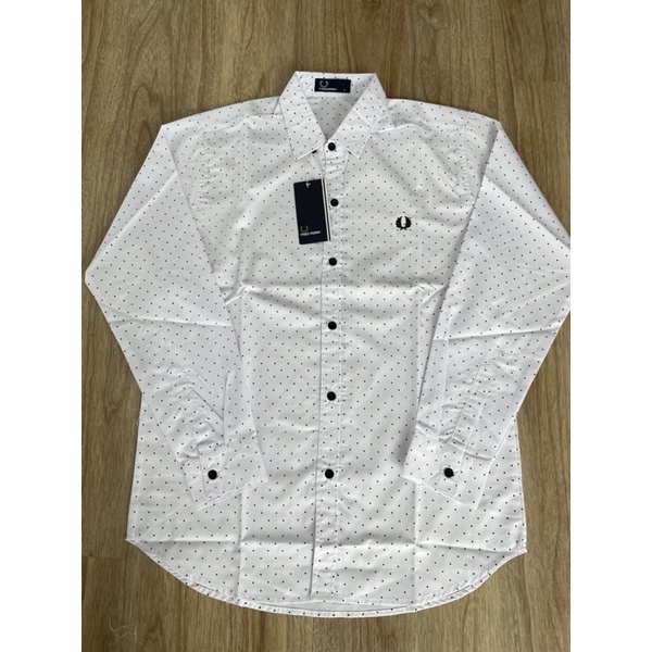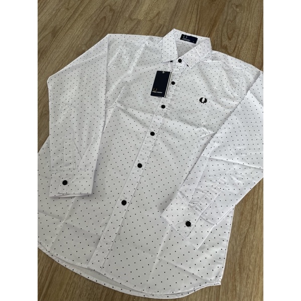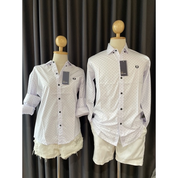 แจ้งน้ำหนักส่วนสูงก่อนสั่ง✅แขนยาวสีขาวจุดดำเนื้อผ้ารีดง่ายใส่สบายใส่ได้ชายหญิง