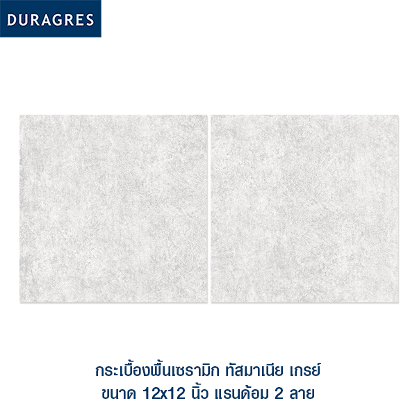 กระเบื้องปูพื้น กันลื่น 12x12 นิ้ว ทัสมาเนีย เกรย์ สีเทา ผิวด้าน ลายซีเมนต์ Duragres by UMIPRO