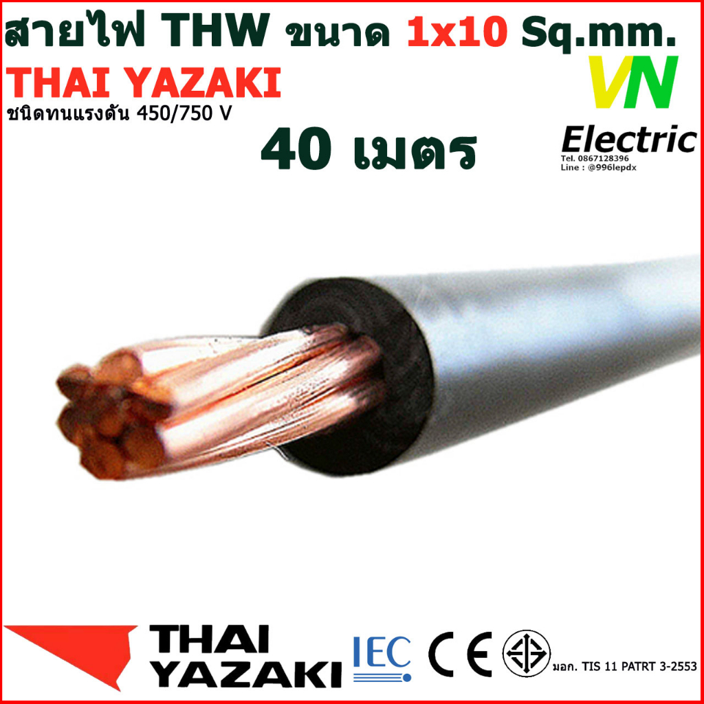 THAI YAZAKI THW 1x10 Sq.mm. สายไฟ ไทย ยาซากิ มีให้เลือกความยาว 20 - 60 เมตร(ราคารวม VAT แล้ว) # สามารถออกใบกำกับภาษีได้