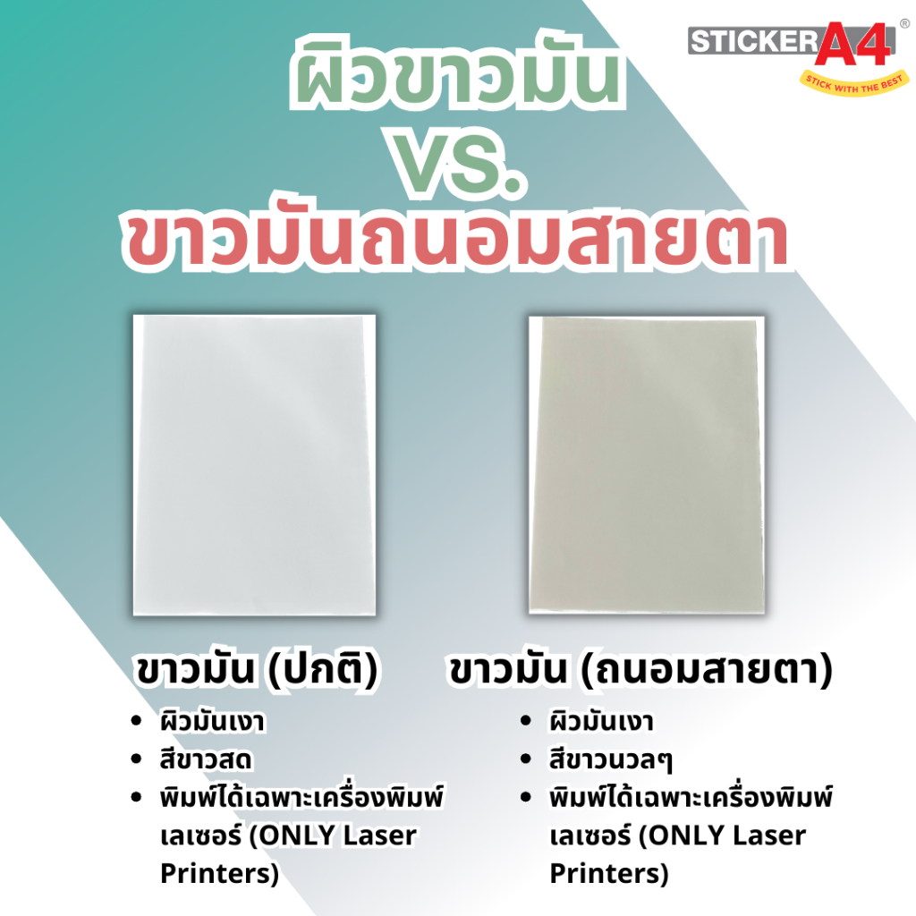 สติกเกอร์กระดาษขาวมัน (ถนอมสายตา) A4/A3 แพ็ค 50 แผ่น A5 แพ็ค 100 แผ่น เกรดเอ เลเซอร์ / Sticker Paper