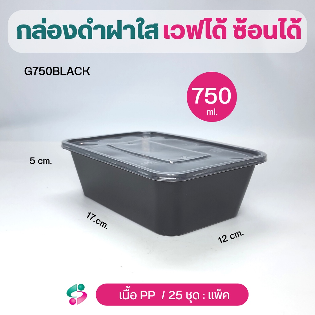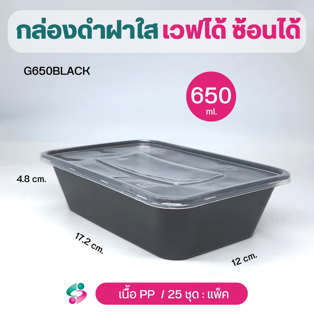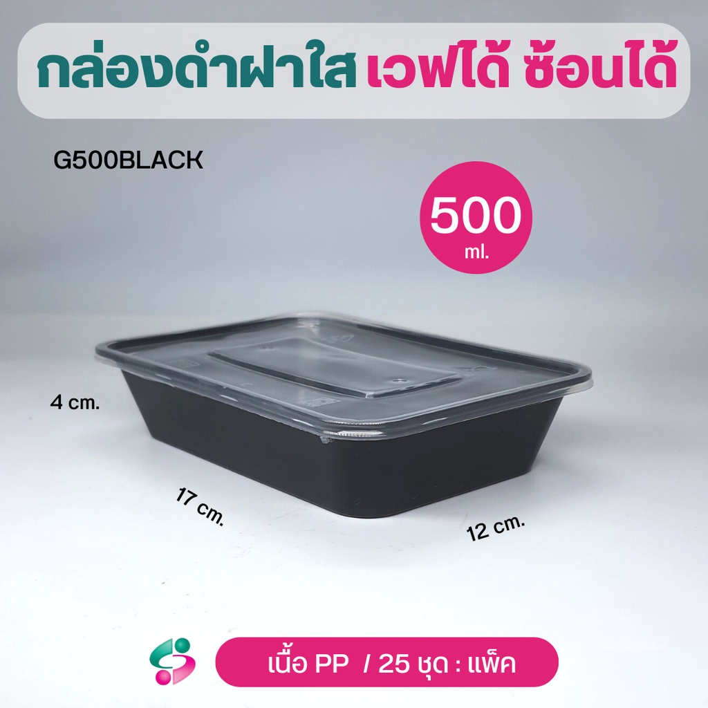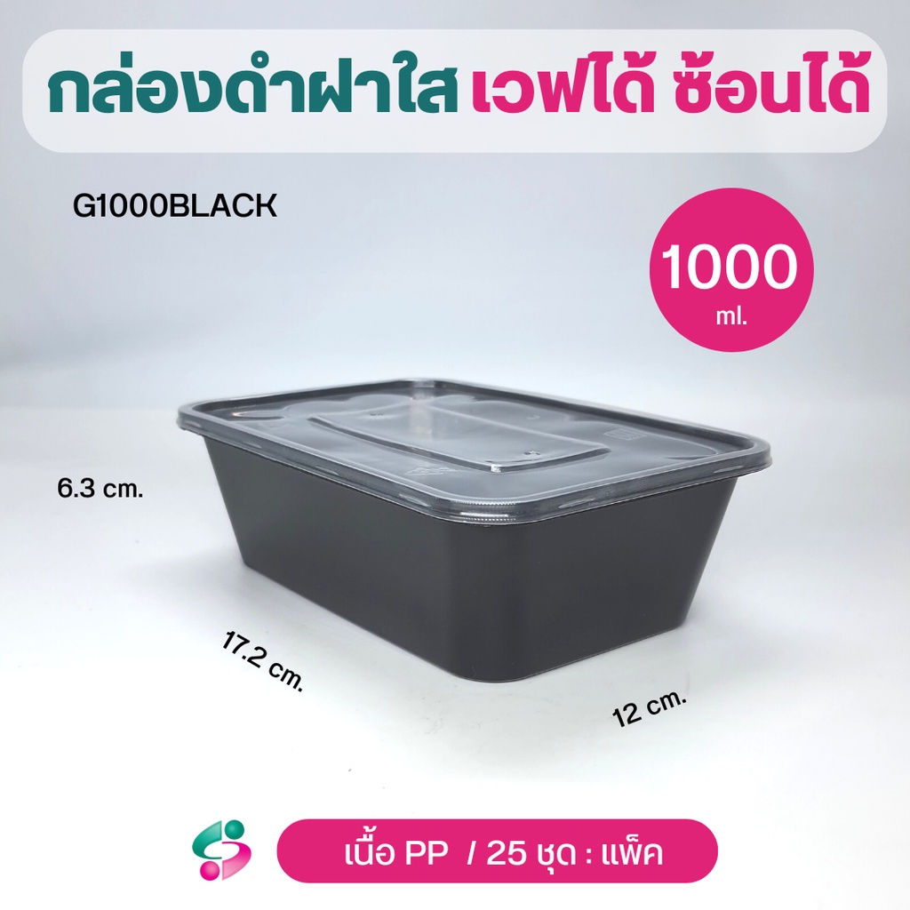 NLกล่องข้าว 1 ช่อง กล่องพลาสติกPP กล่องใส่อาหาร จุ 500/ 650 /750 /1000 ml สีดำ ฝาใส