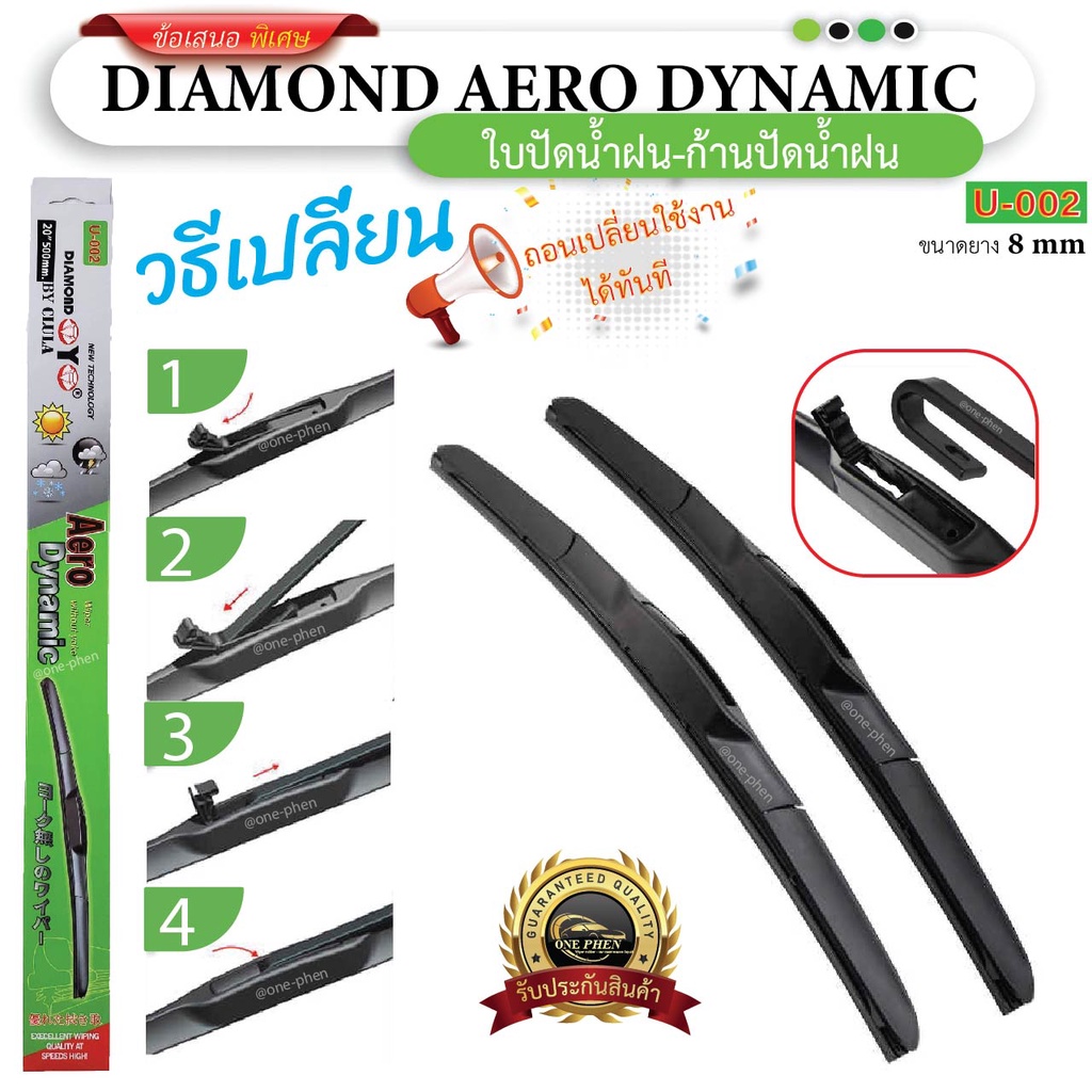 ใบปัดน้ำฝน สำหรับ TOYOTA ทุกรุ่น (1คู่/2ชิ้น) DIAMOND EYE U-002 กล่องเขียว