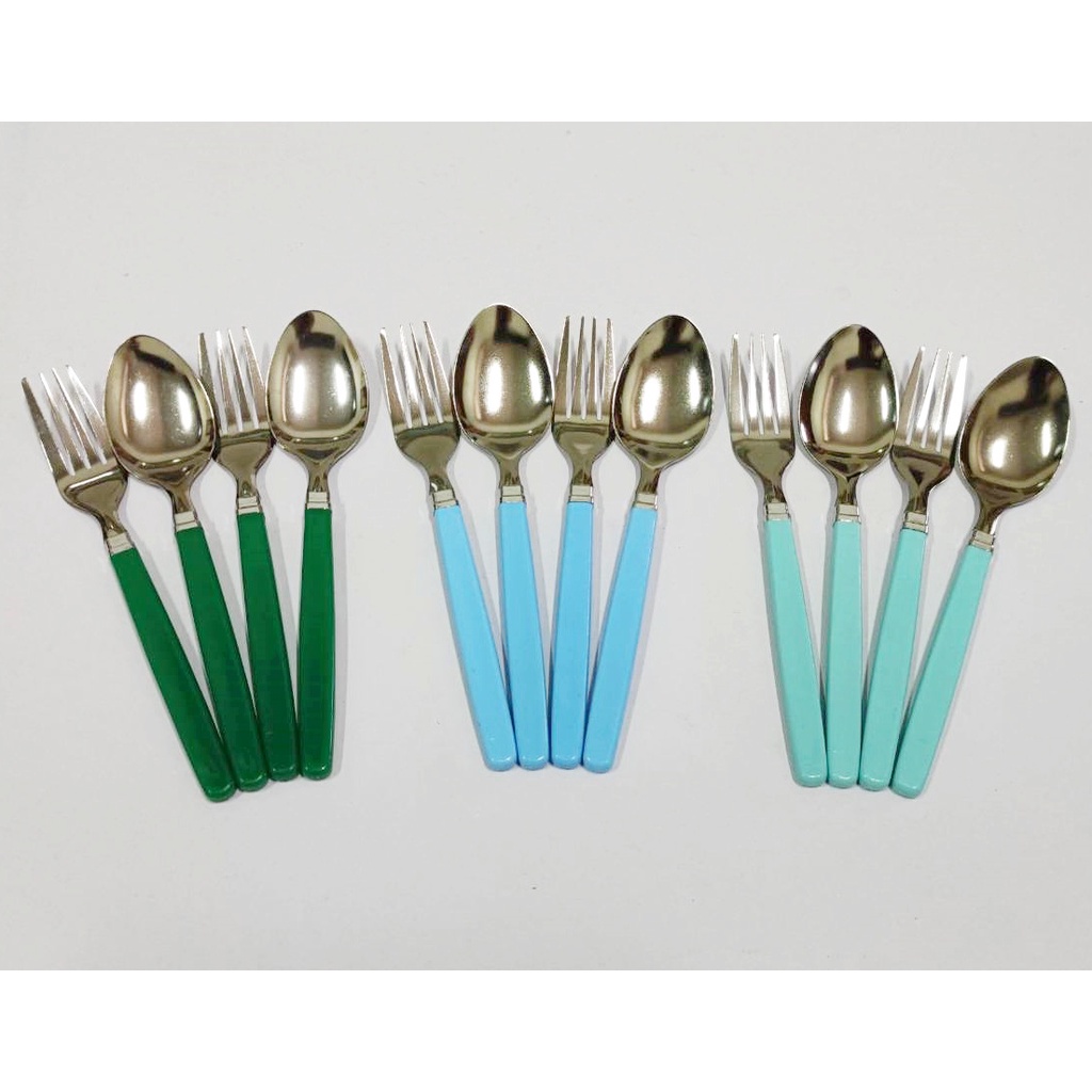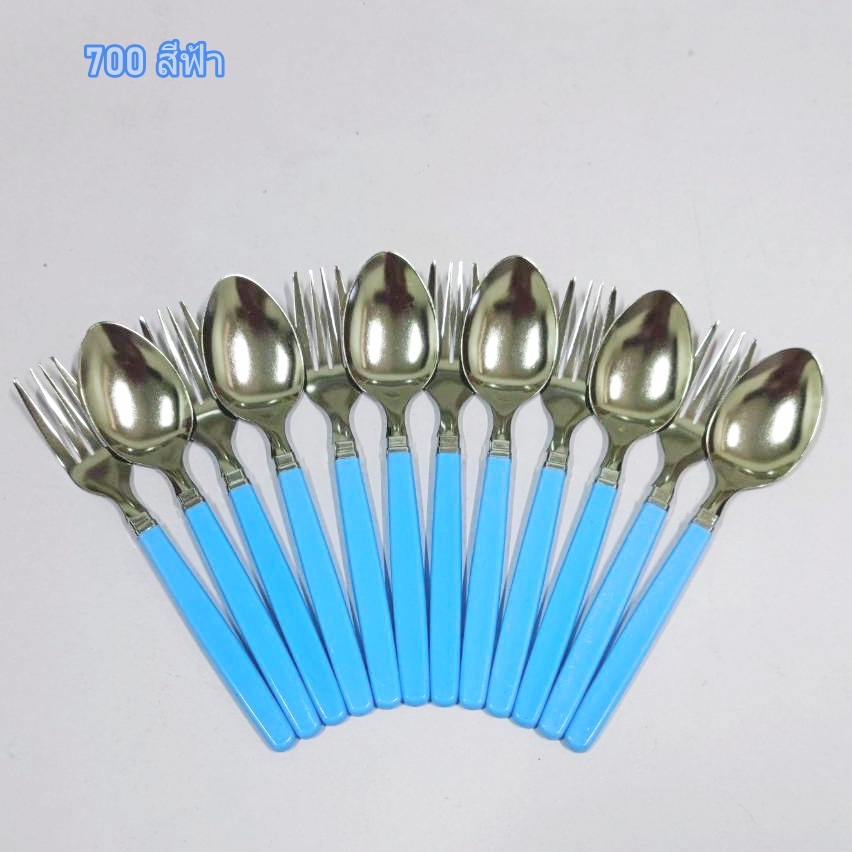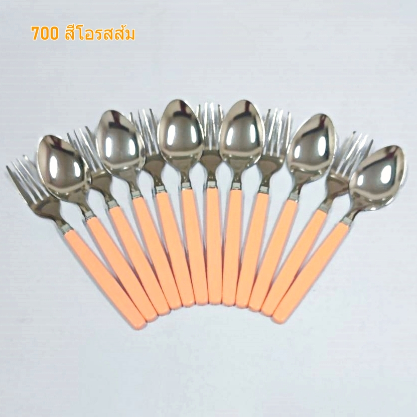 WHITE SHARK ช้อนส้อมสเตนเลสด้ามสี NO.700 ตราฉลามขาว 6 คู่ สีสันสวยงาม หลากสี
