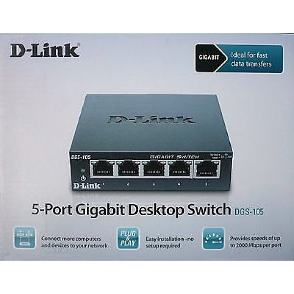 สวิตซ์ฮับ D-LINK (DGS-105) (DGS-105GL 108GL) 5 Port Gigabit Switching Hub 10/100/1000 Mbps LT