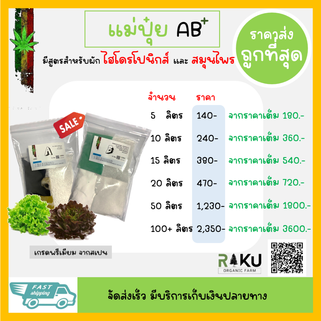 แม่ปุ๋ย AB เข้มข้น 20 ลิตร(แบ่งเป็น 10 ลิตร 2 ชุด) สำหรับพืชไฮโดรโปนิกส์ ผักสลัด ผักไทย ปุ๋ยน้ำ ปุ๋ยผง