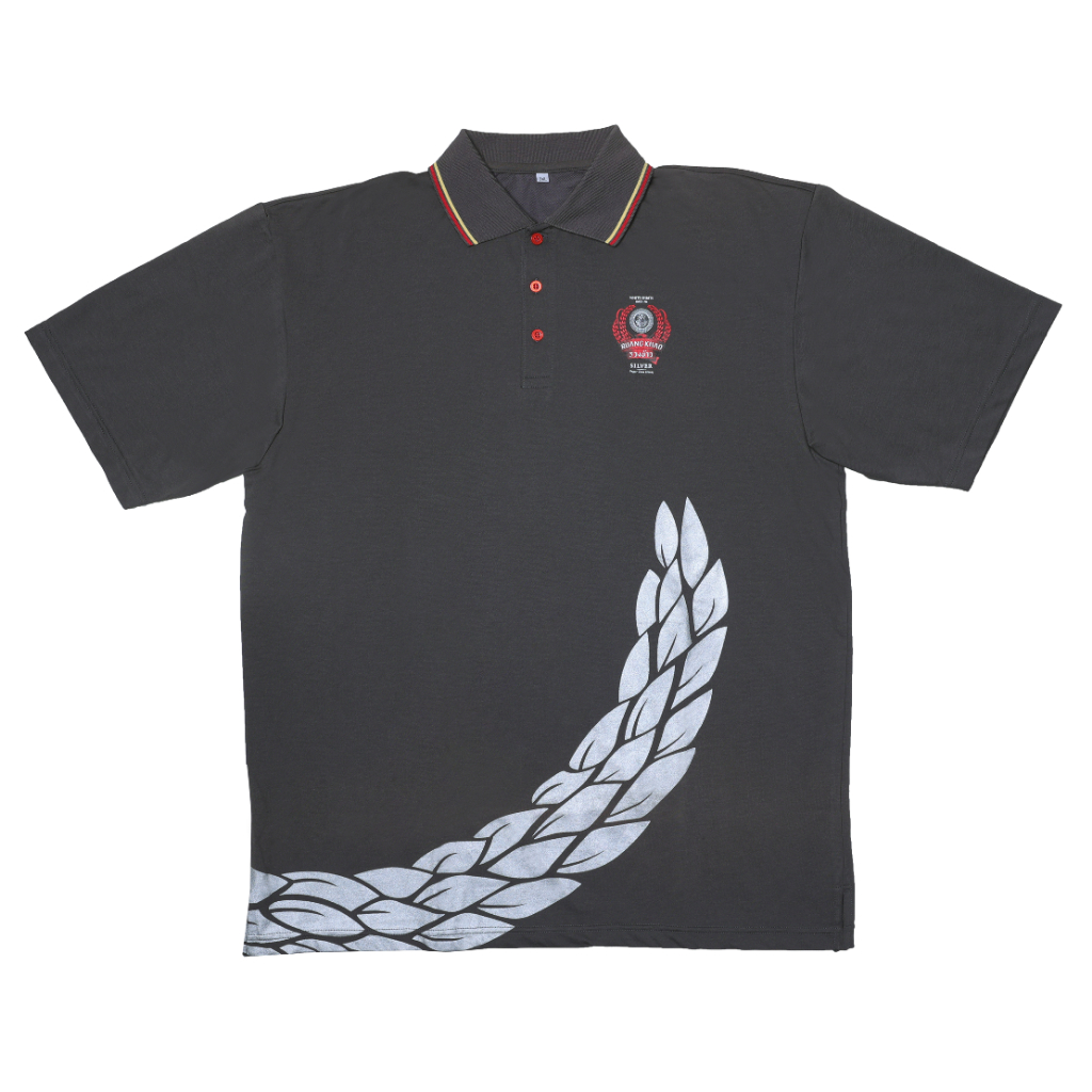 เสื้อโปโล สีเทา ทรงตรง แขนปล่อย คุณภาพพรีเมี่ยม พิมพ์ลาย รวงข้าว